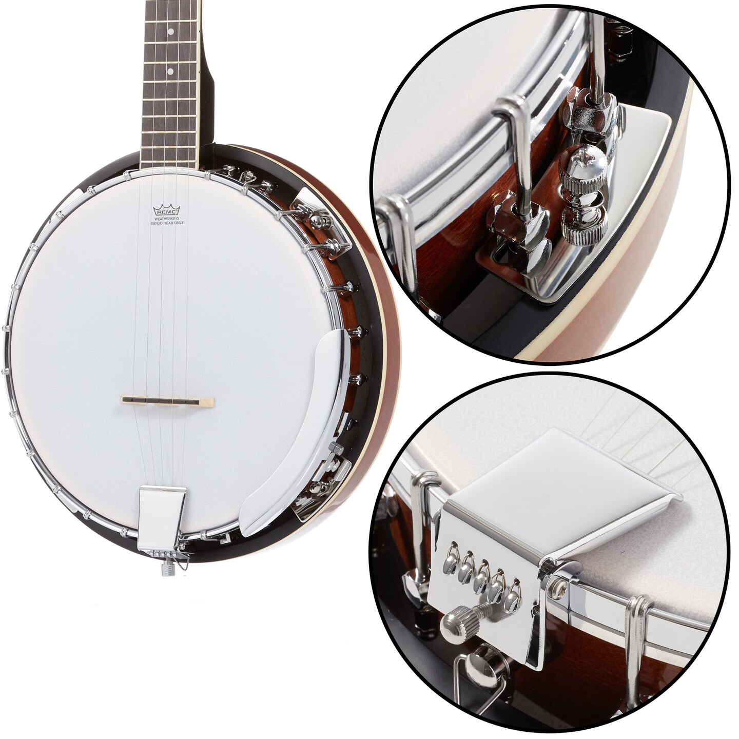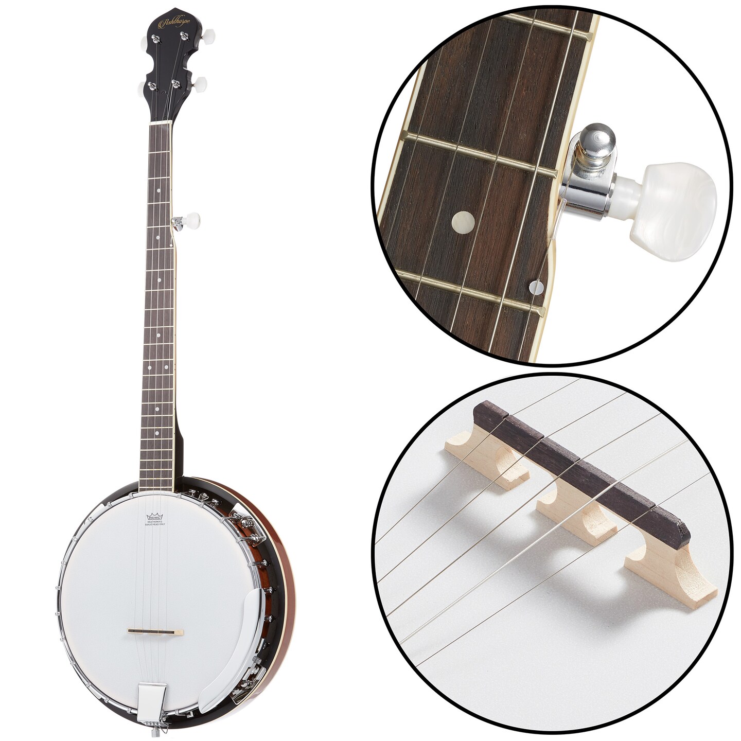 Ashthorpe 5-String Banjo - Full Size with 24 Brackets, Closed Back, Mahogany Resonator, and Geared 5th Tuner