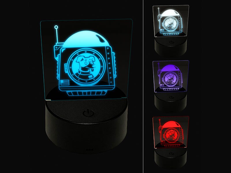 Astronaut Space Dog in Shuttle Landing Pod 3D Illusion LED Night Light Sign Nightstand Desk Lamp