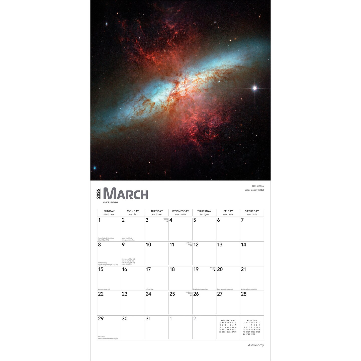 Astronomy | 2026 12 x 24 Inch (Hanging) Monthly Square Wall Calendar | Foil Stamped Cover | Plastic-Free