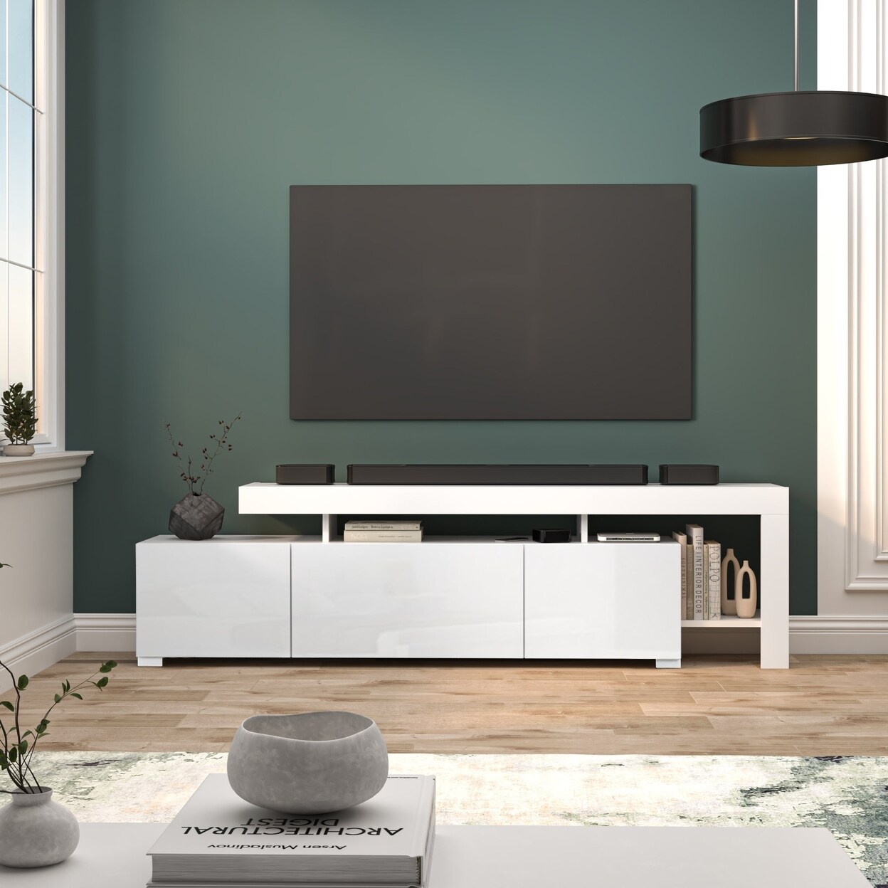 Atelier Mobili Entertainment Center, White TV Stand for Living Room, Entertainment Center with Storage, Perfect as TV