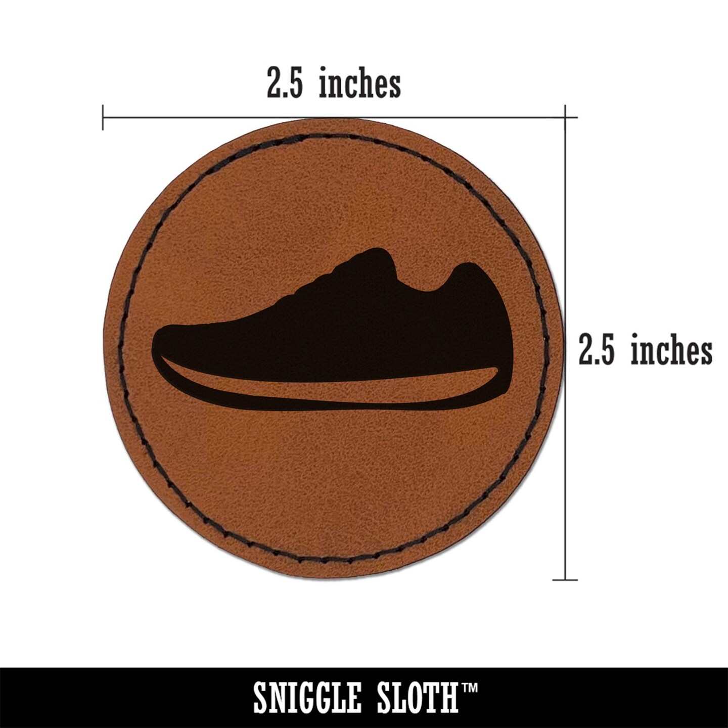 Athletic Running Shoe Round Iron-On Engraved Faux Leather Patch Applique - 2.5"