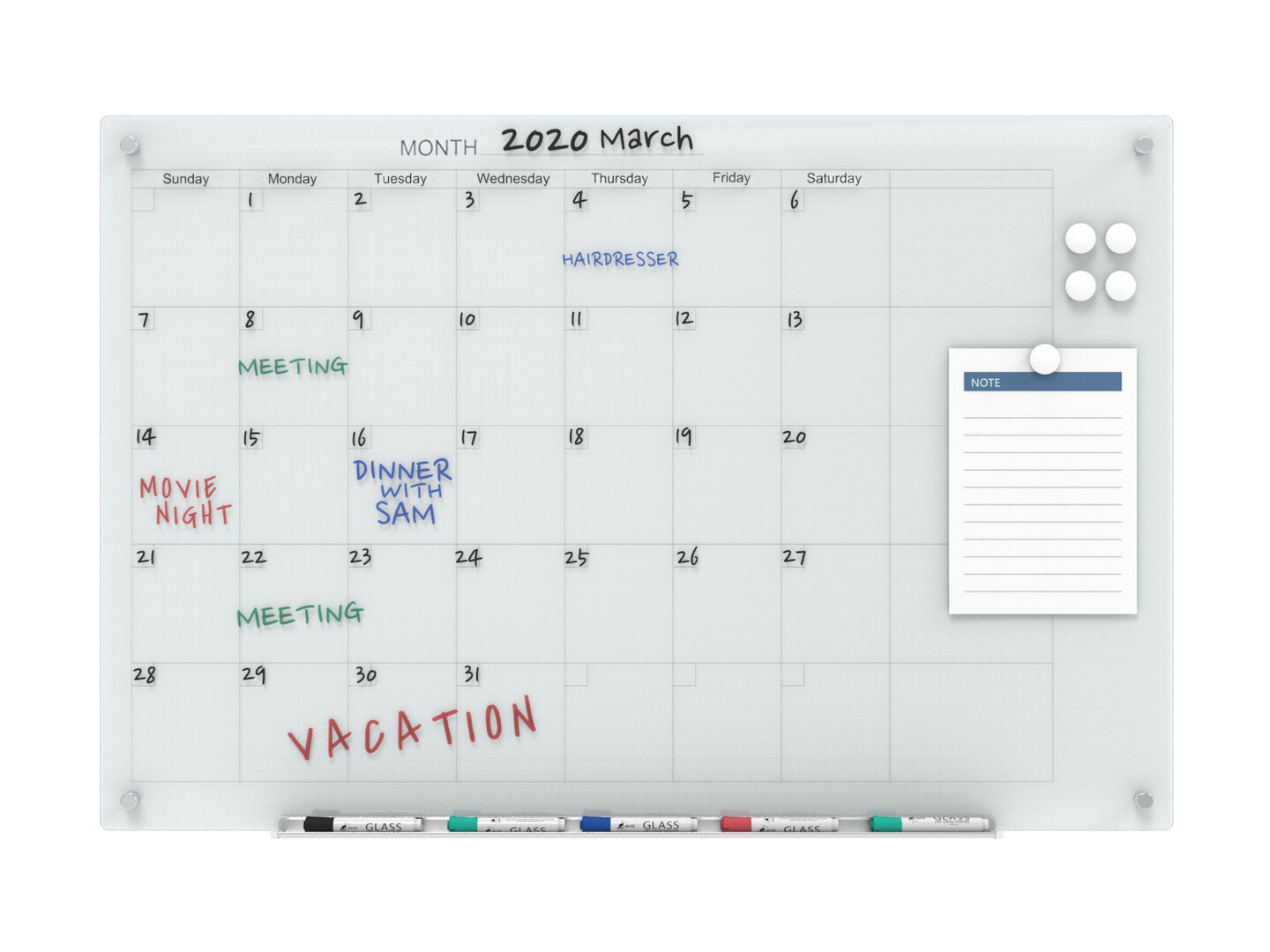 Audio-Visual Direct Magnetic Calendar Glass Dry Erase Board Set - Monthly Planner