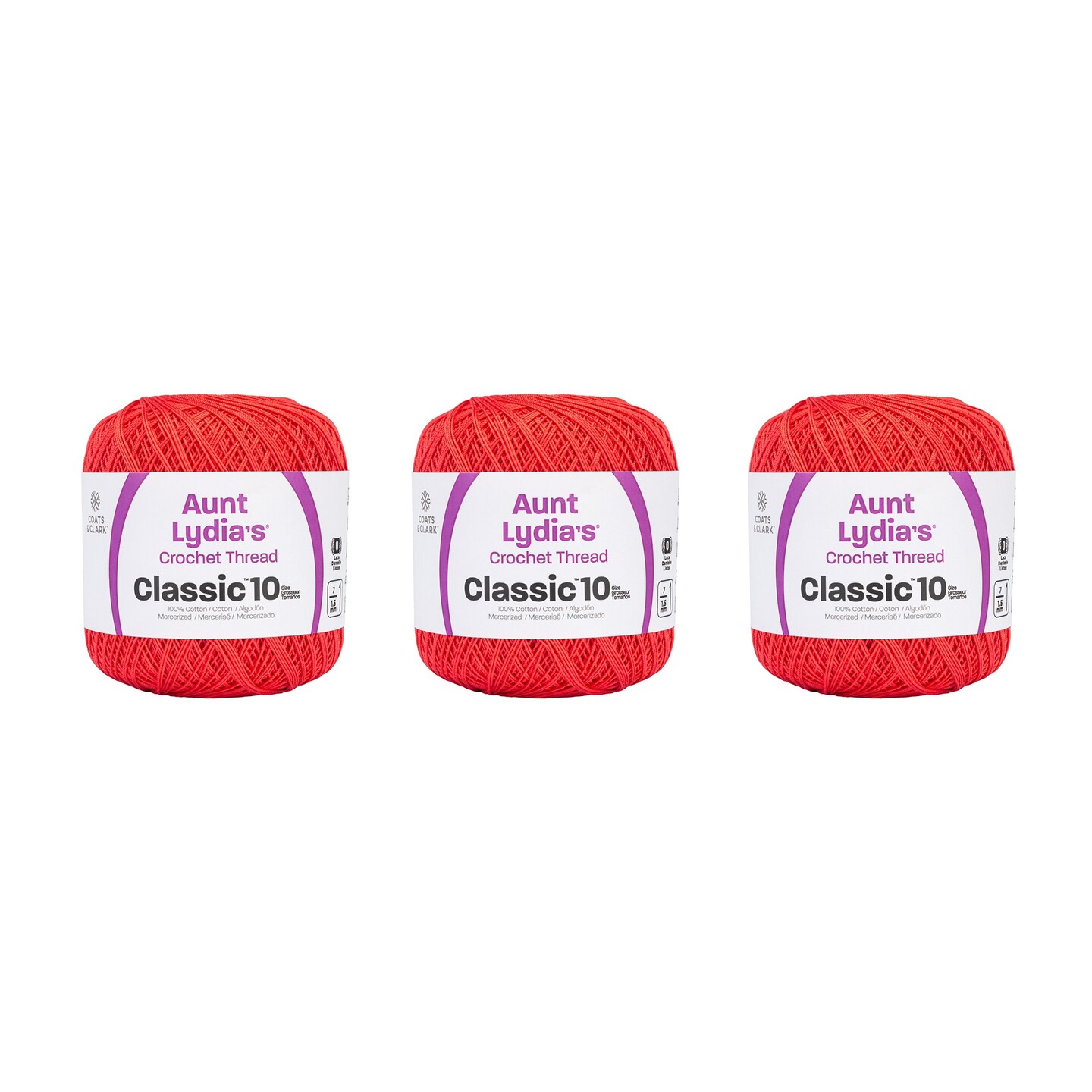 Aunt Lydia Classic Bright Coral Crochet - 3 Pack of 350y/320m - Cotton - Gauge 10 - Crochet
