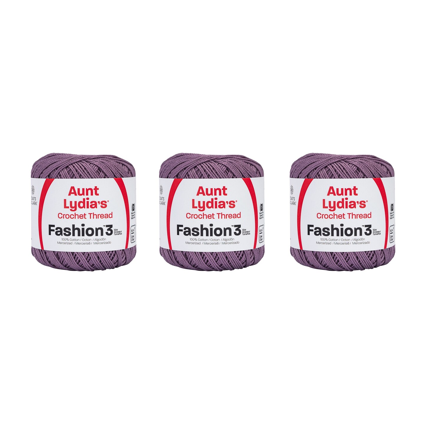 Aunt Lydia Fashion Plum Crochet - 3 Pack of 150y/137m - Cotton - Gauge 3 - Crochet