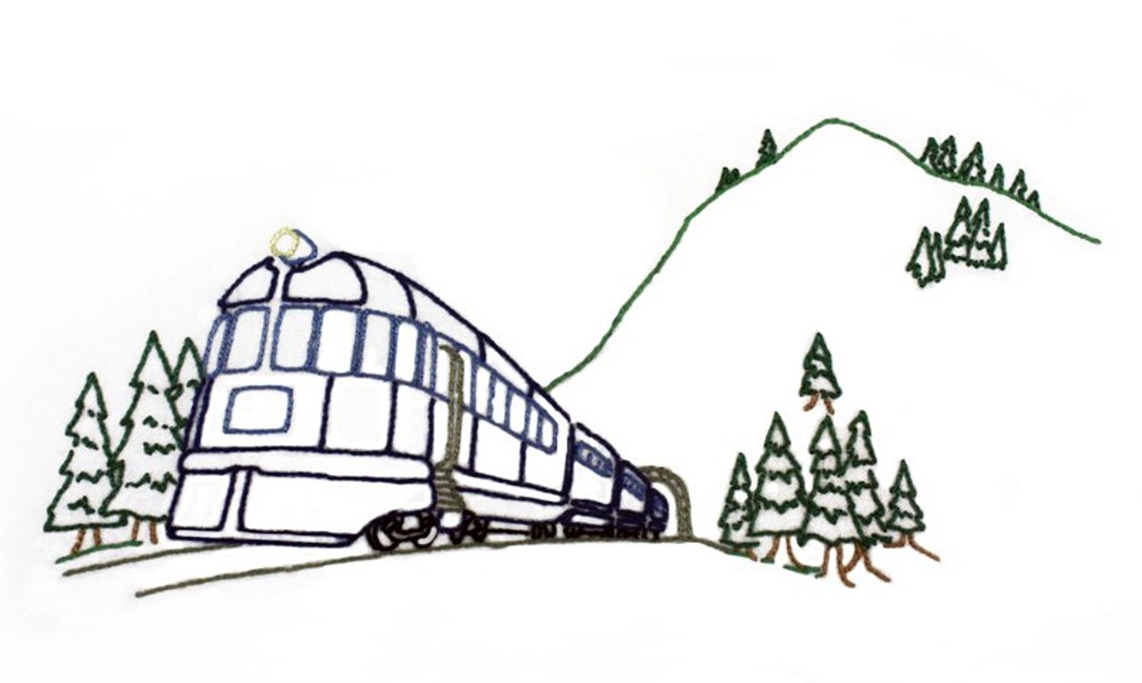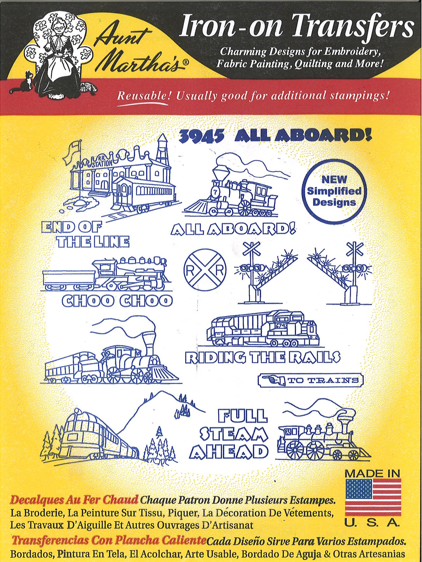 Aunt Martha's All Aboard 3945 trains embroidery iron on pattern