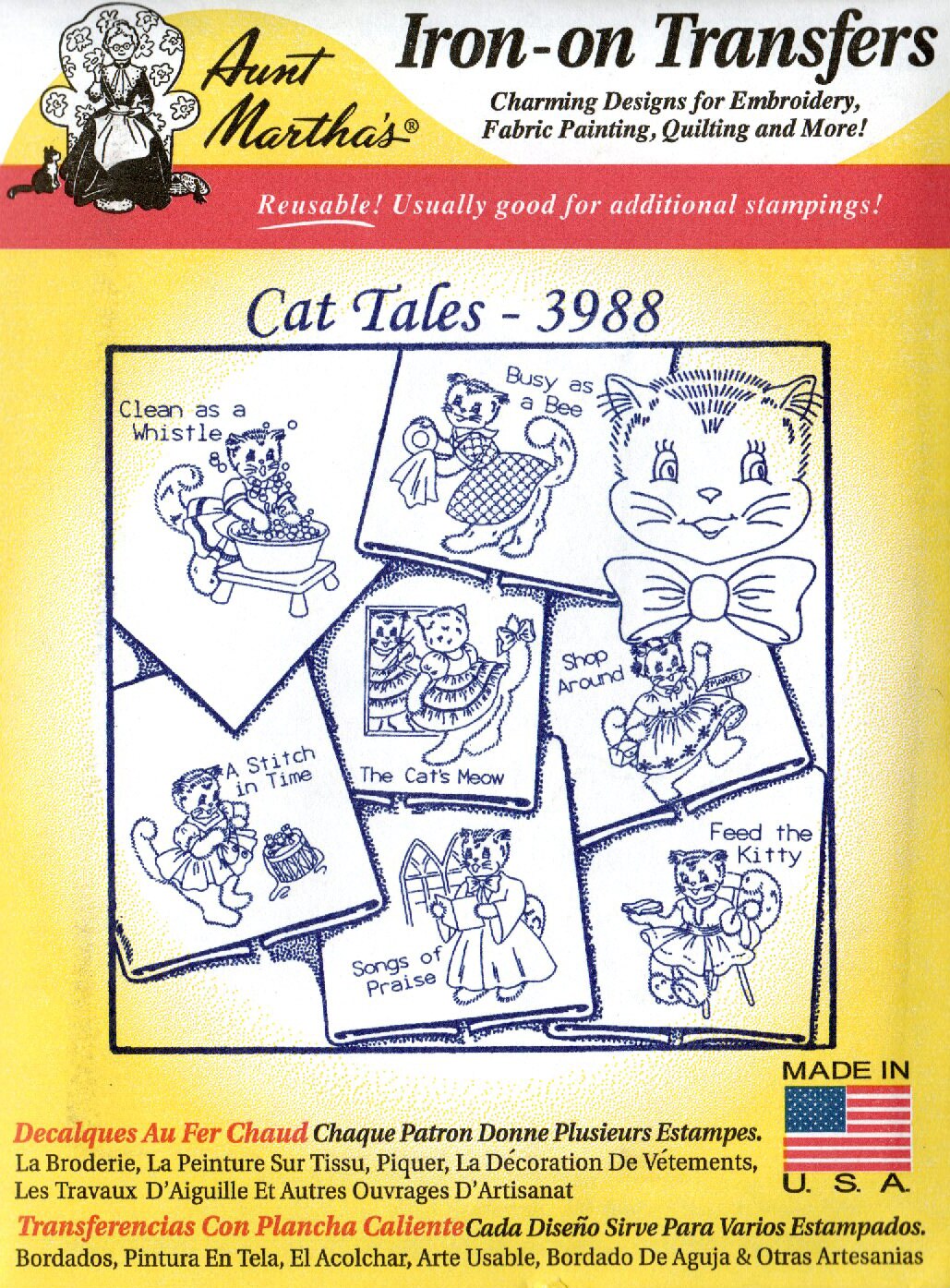 Aunt Martha's Cat Tales 3988 embroidery iron on pattern