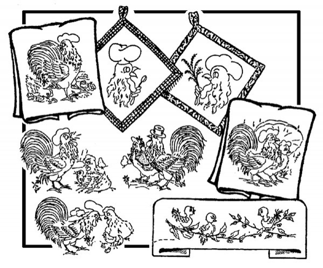 Aunt Martha's Chicken Romance 3974 embroidery iron on pattern