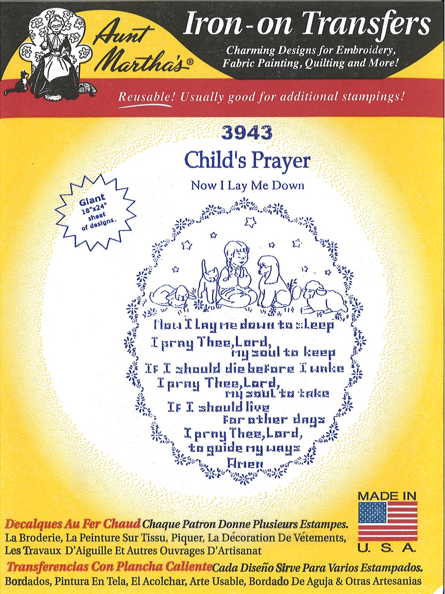 Aunt Martha's Child's Prayer 3943 embroidery iron on pattern