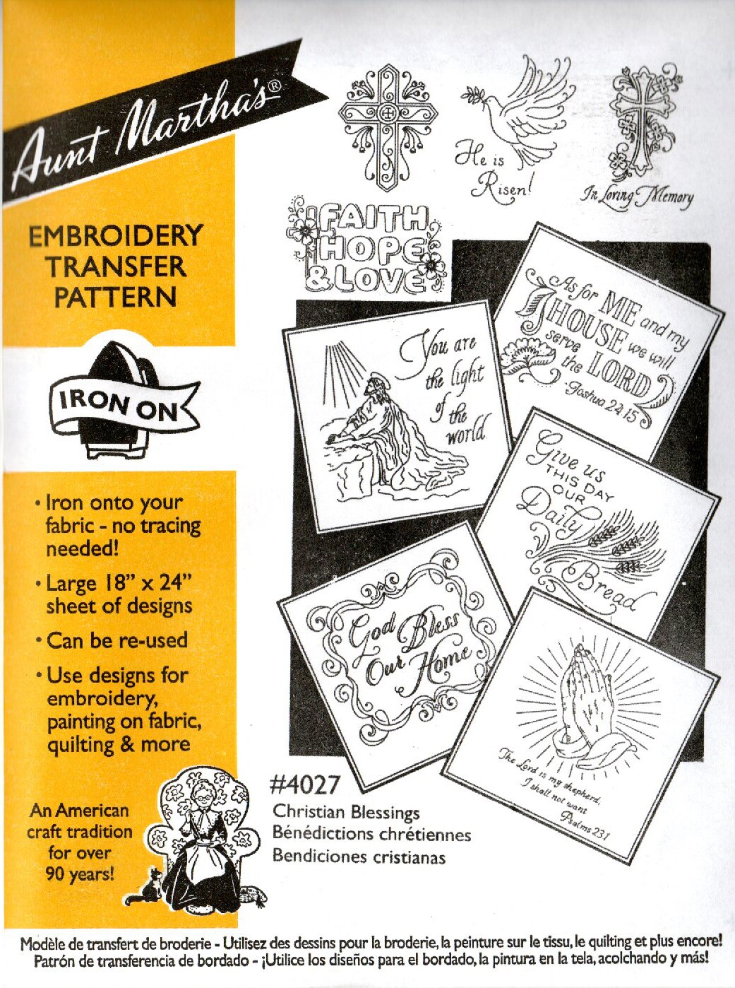 Aunt Martha's Christian Blessings 4027 embroidery iron on pattern