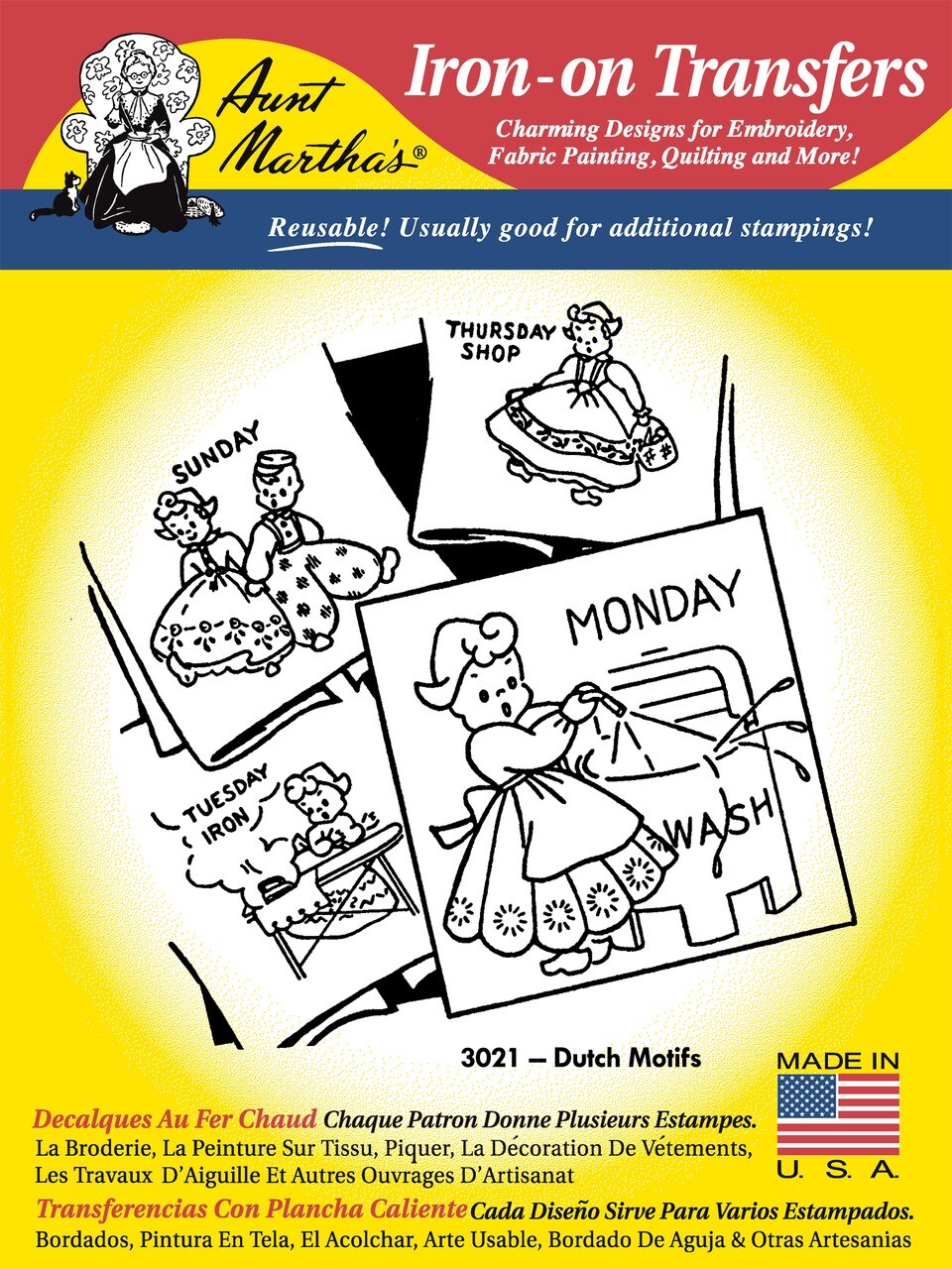 Aunt Martha's Dutch Motifs 3021 days of the week embroidery iron on patterns