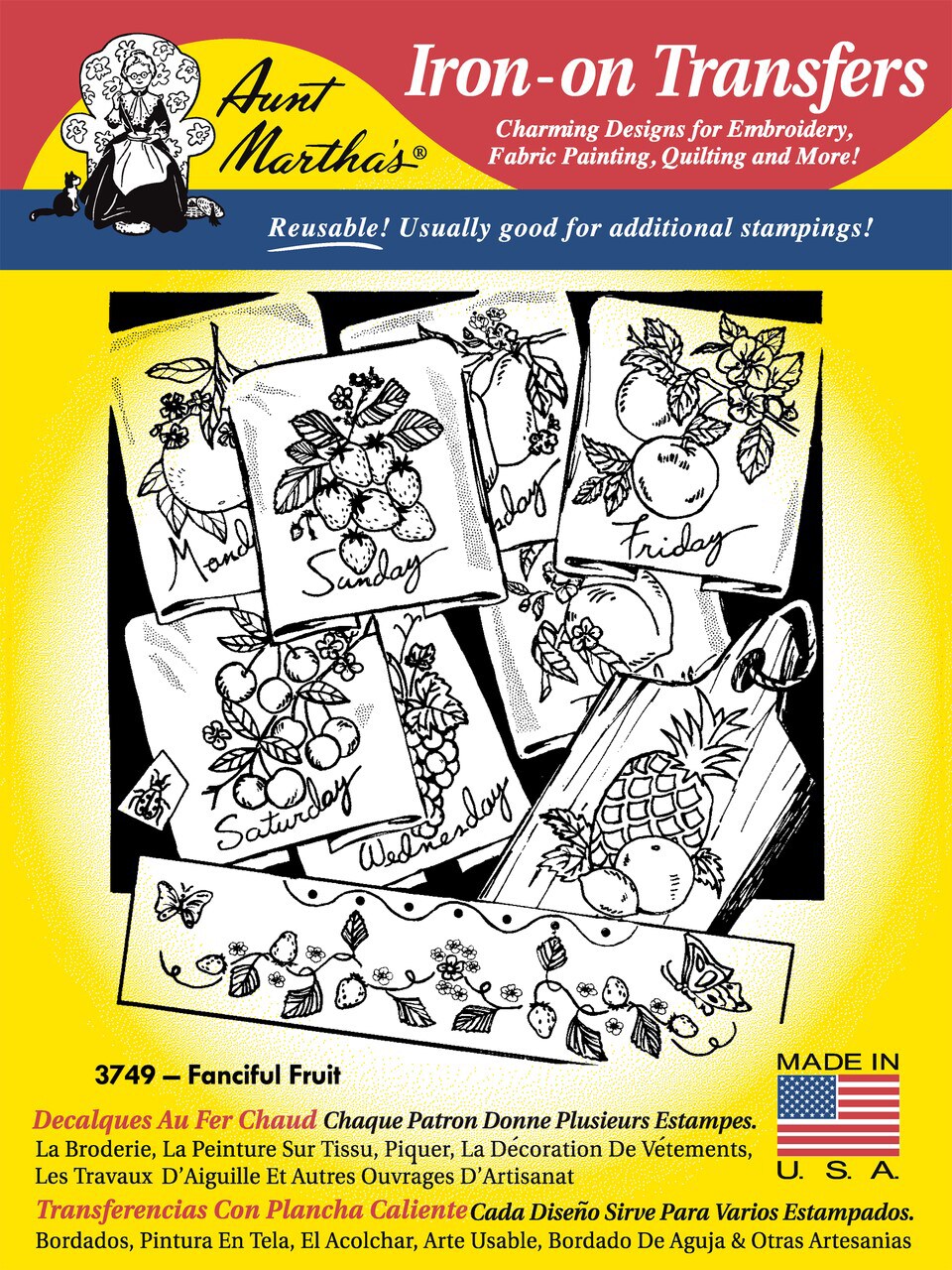 Aunt Martha's Fanciful Fruit 3749 embroidery iron on pattern