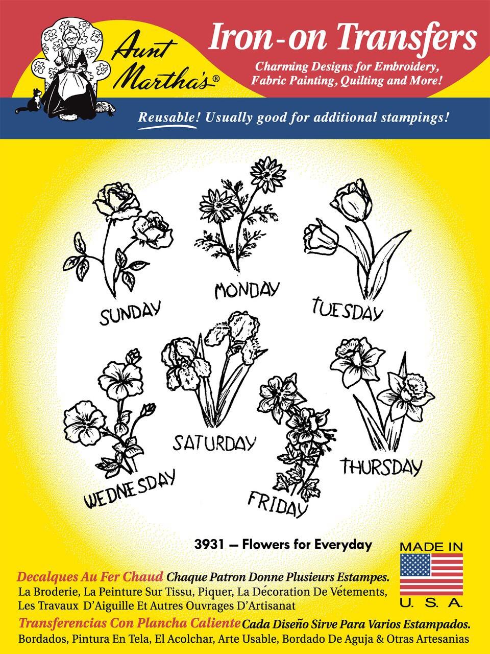 Aunt Martha's Flowers for Everyday 3931 days of the week embroidery iron on pattern