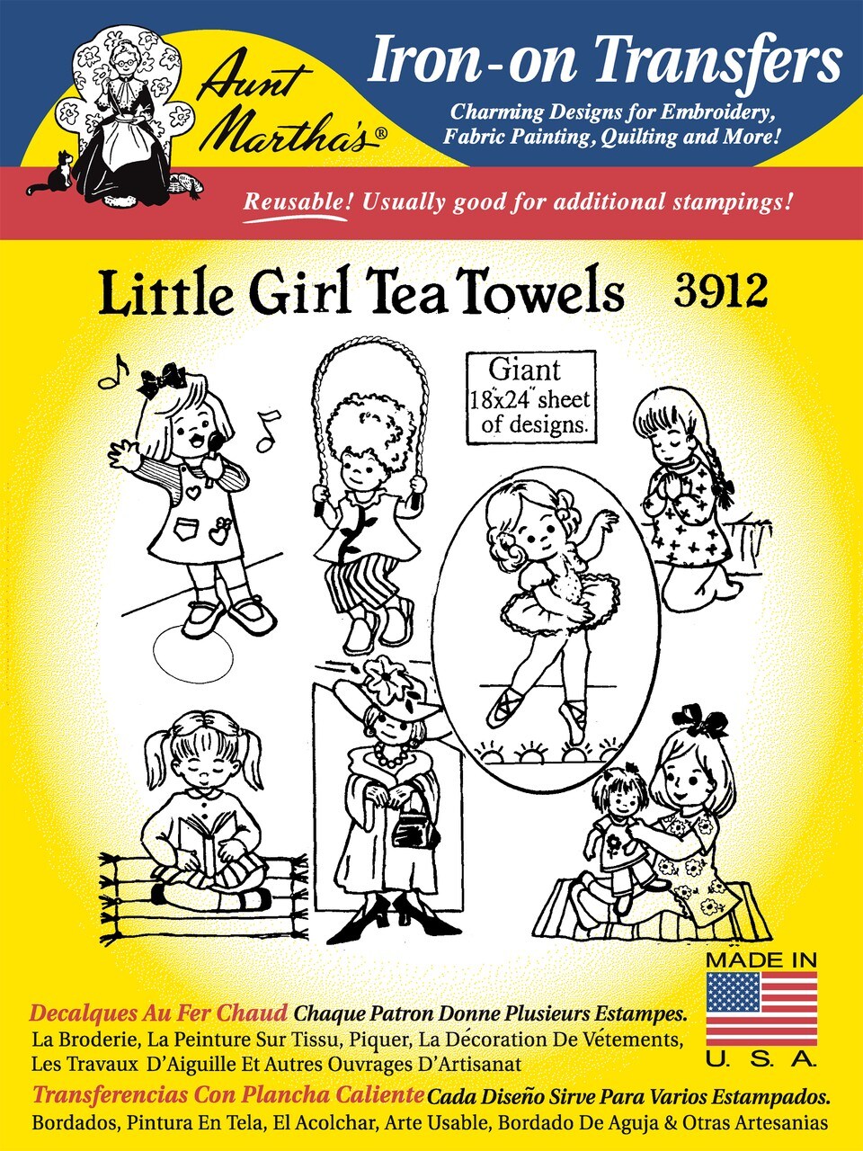 Aunt Martha's Little Girl Tea Towels 3912 embroidery iron on pattern