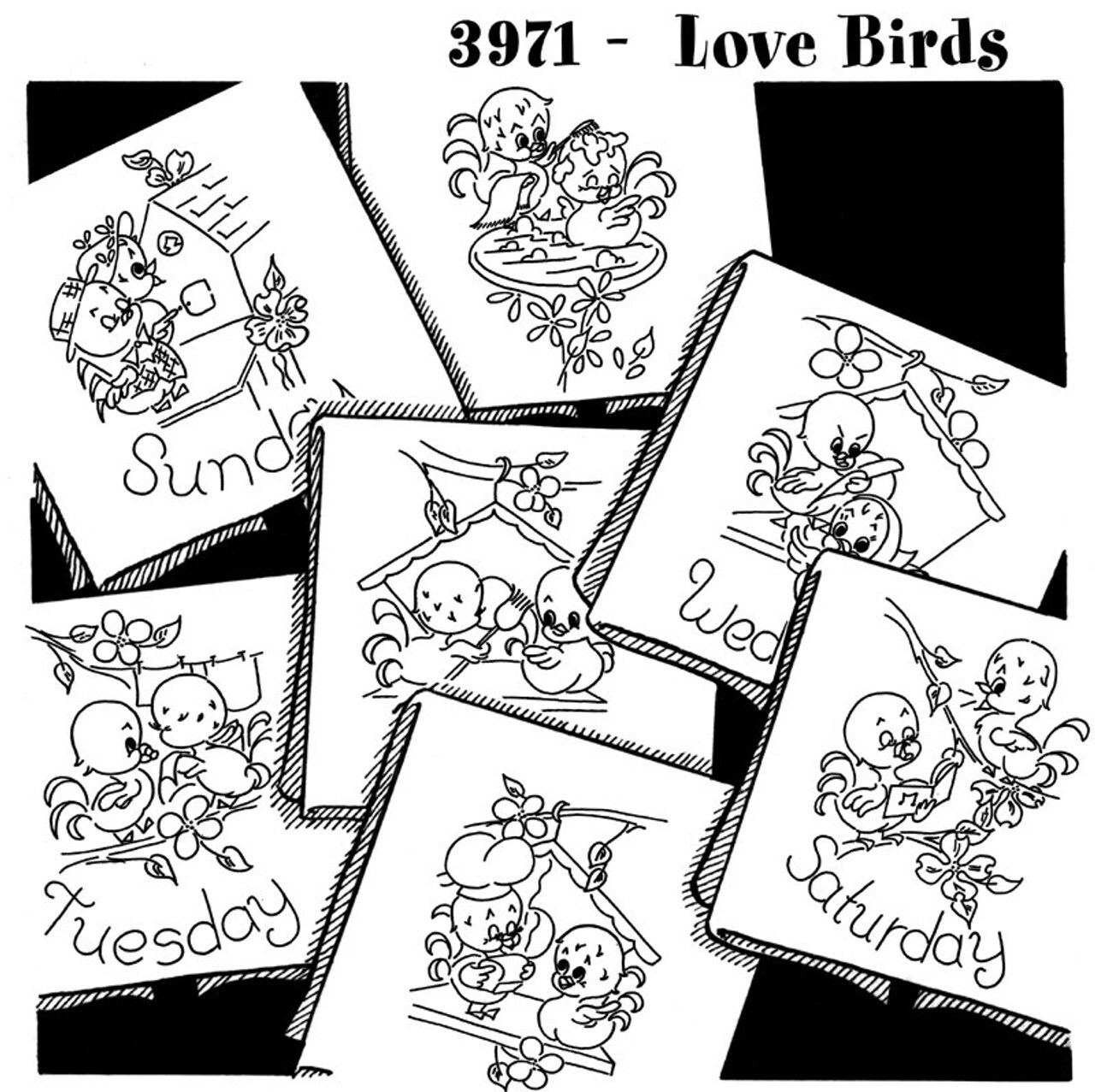 Aunt Martha's Love Birds 3971 days of the week embroidery iron pattern
