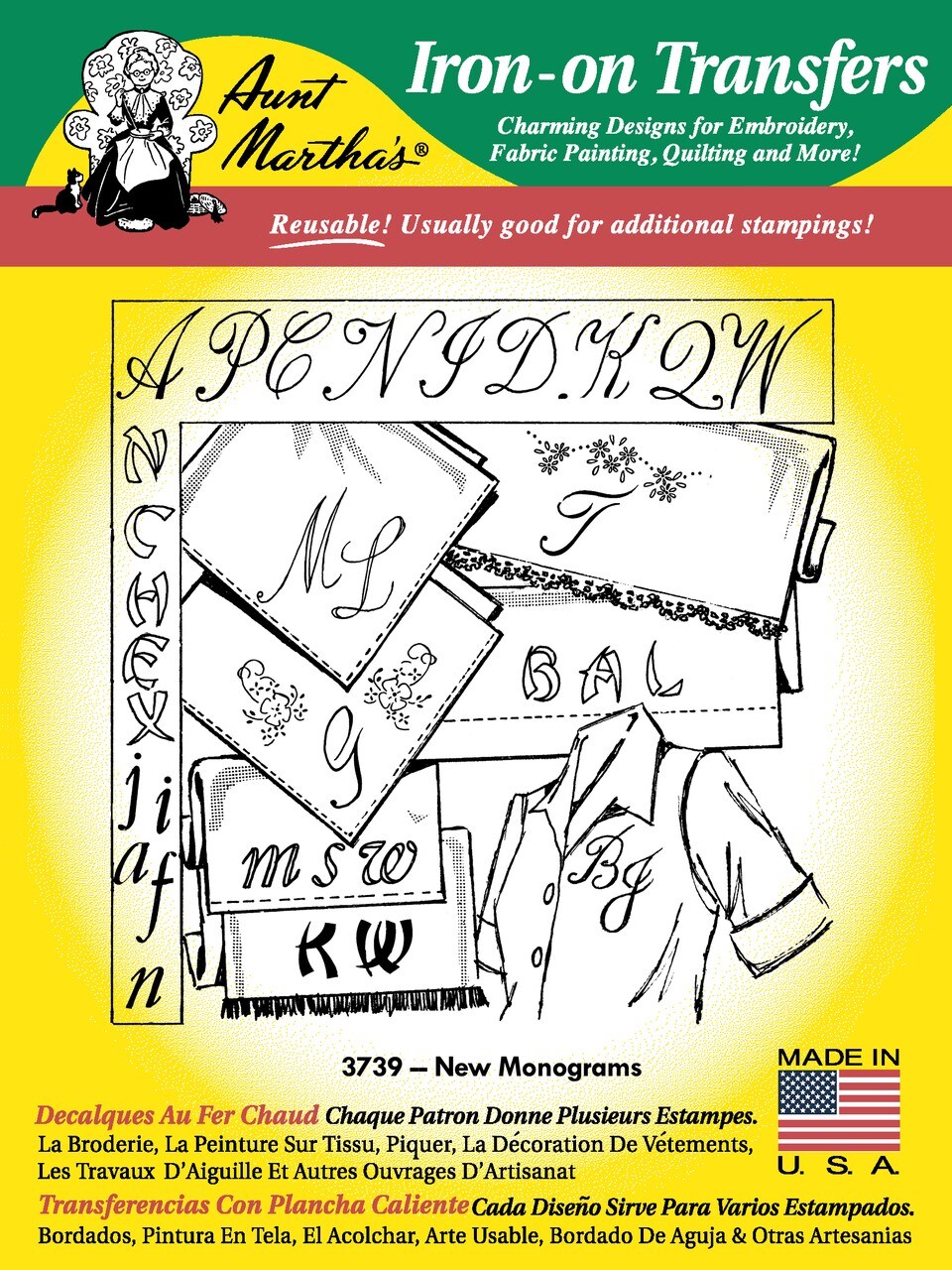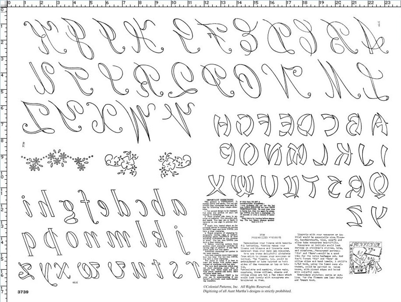 Aunt Martha's New Monograms 3739 embroidery iron on pattern