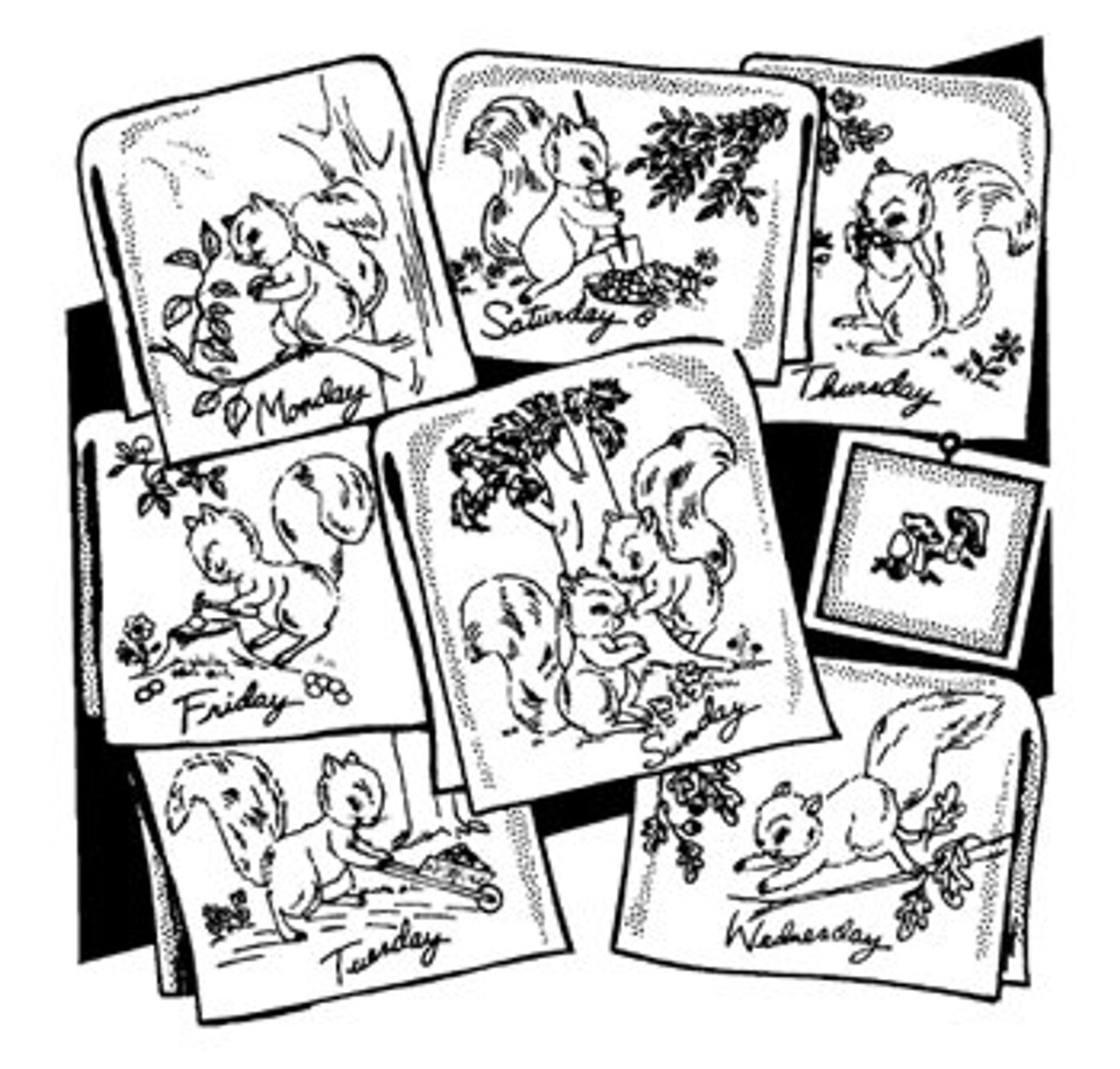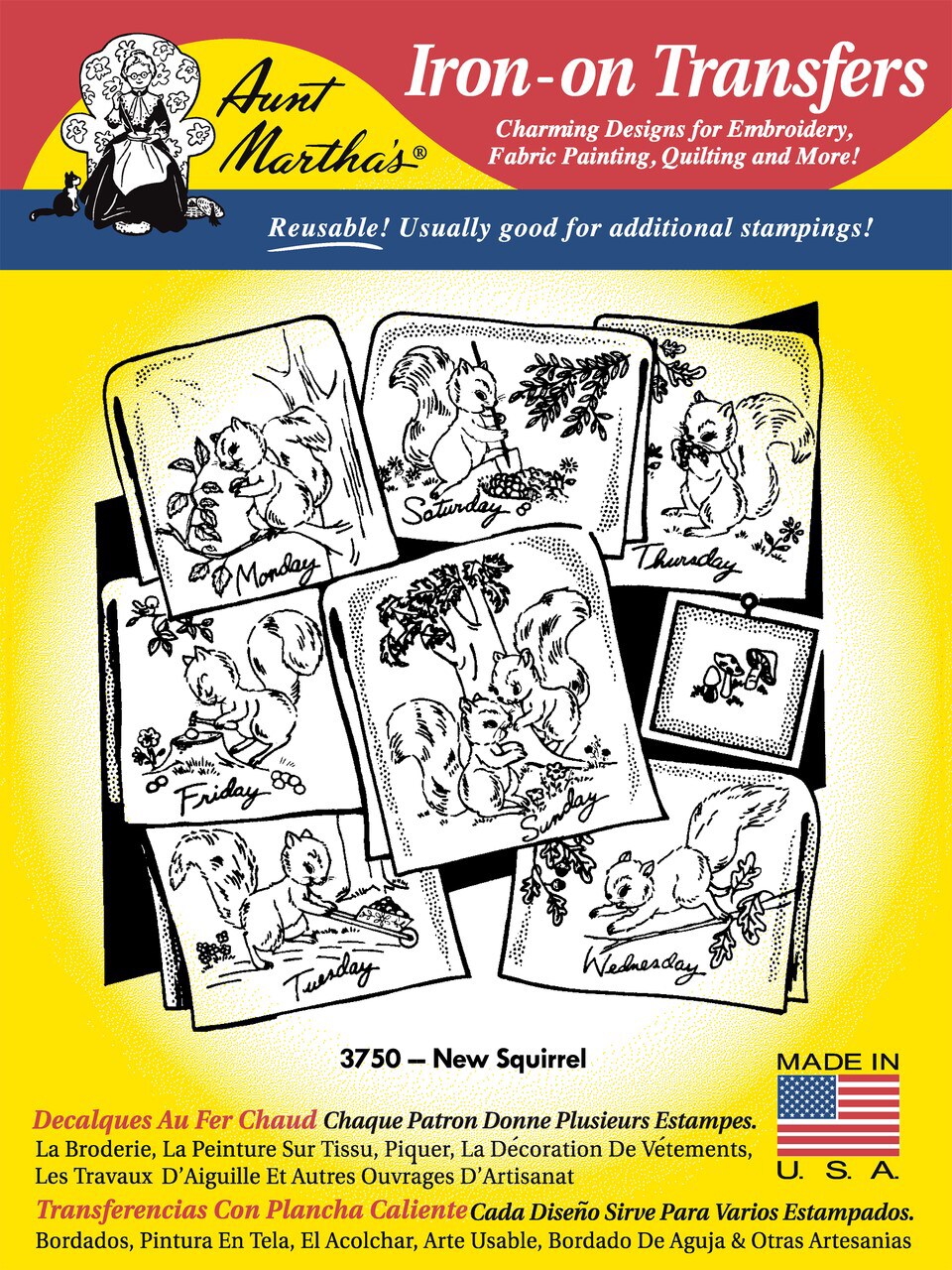 Aunt Martha's New Squirrel 3750 embroidery iron on pattern