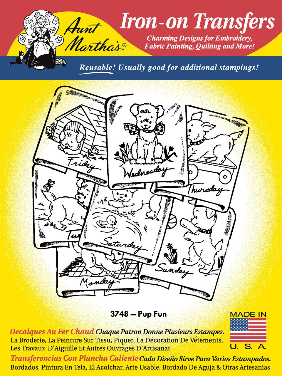Aunt Martha's Pup Fun 3748 embroidery iron on pattern