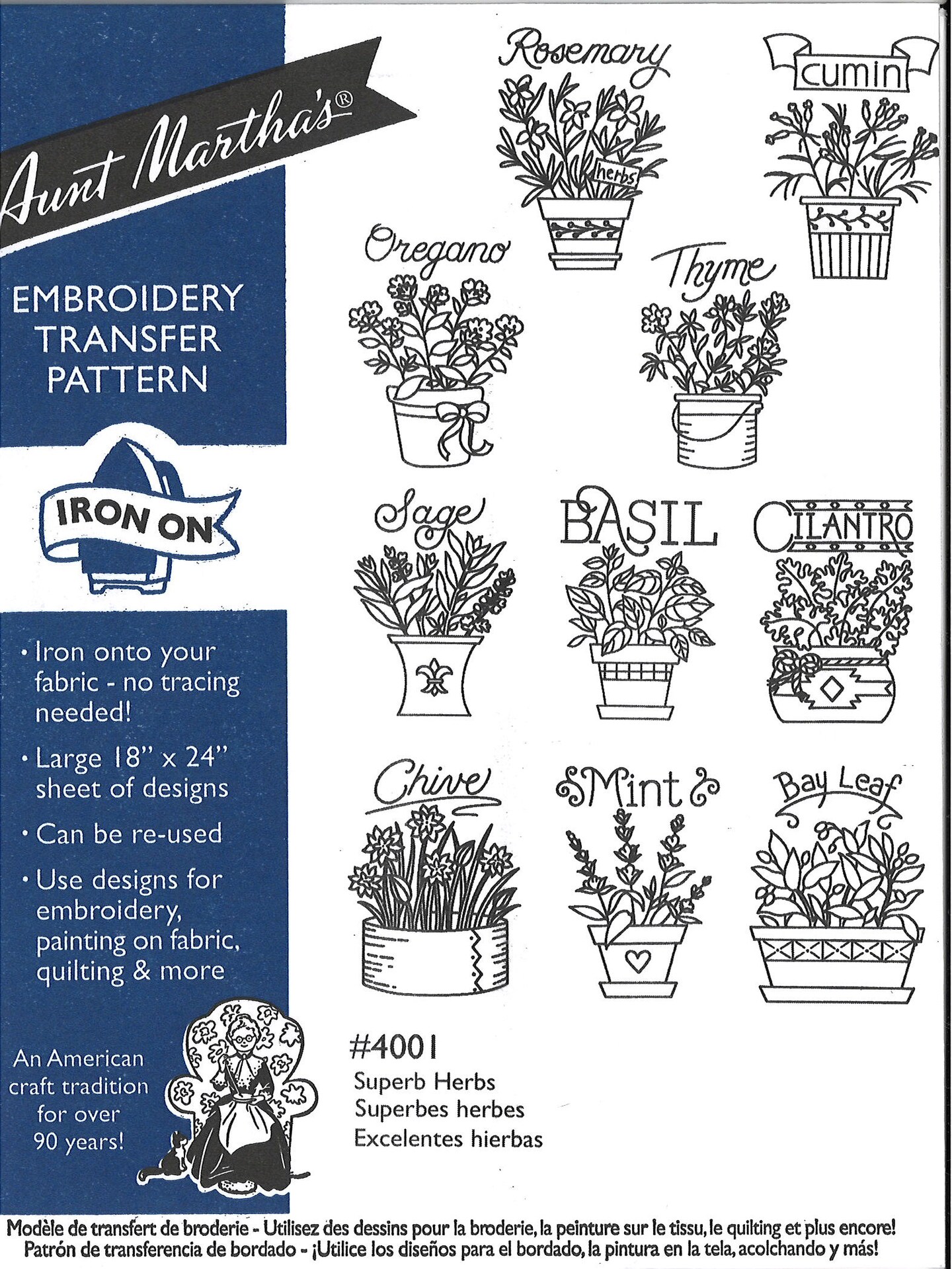 Aunt Martha's Superb Herbs 4001 embroidery iron on pattern