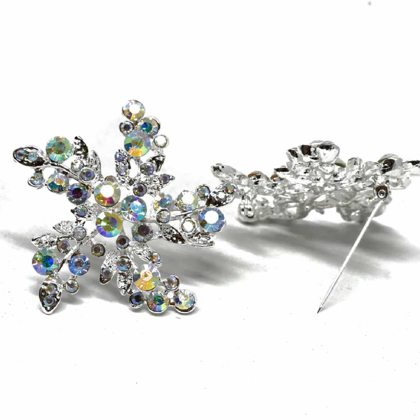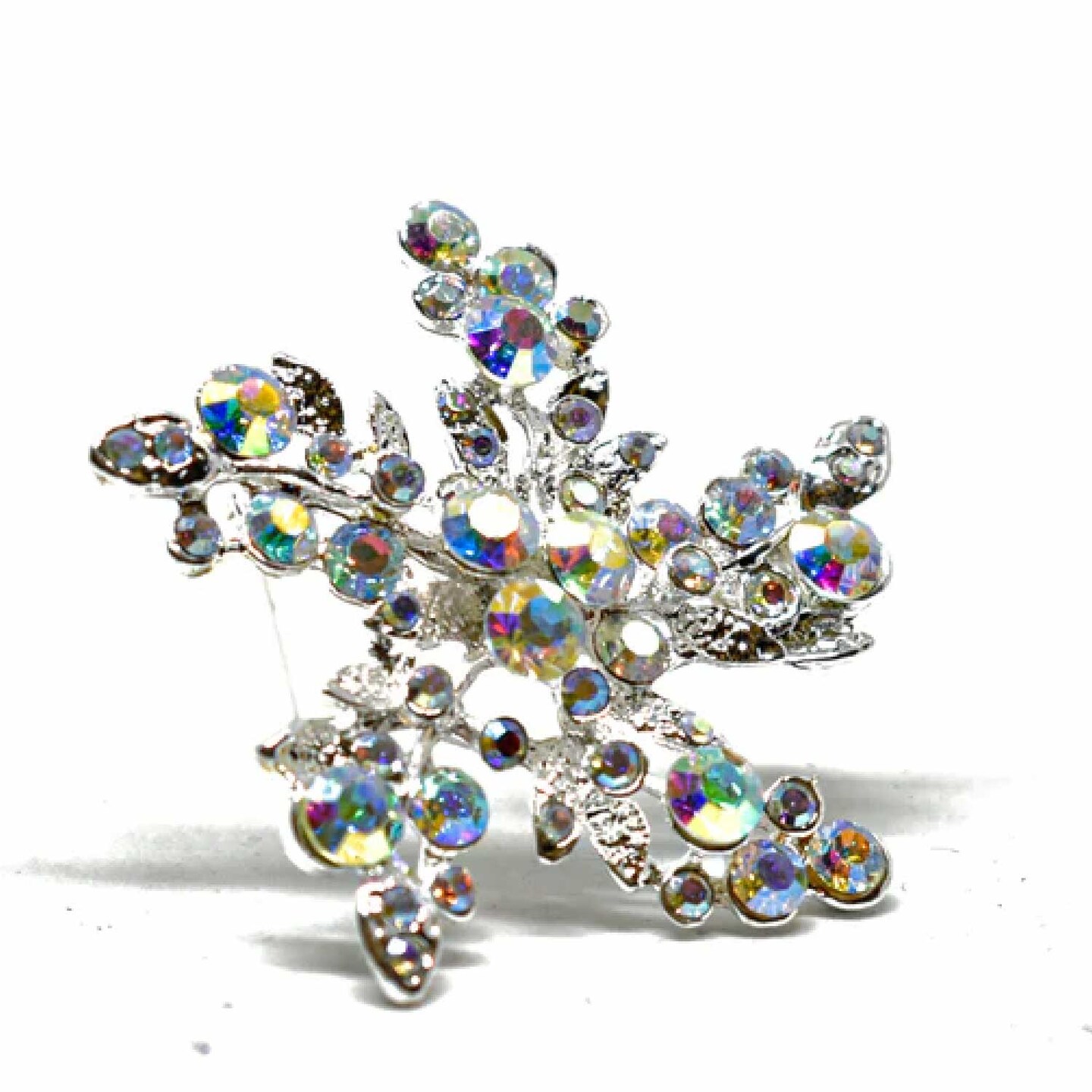 Aurora Borealis Rhinestone Flower Brooch Pin For Outfits Gifts Crafts 2 Inch