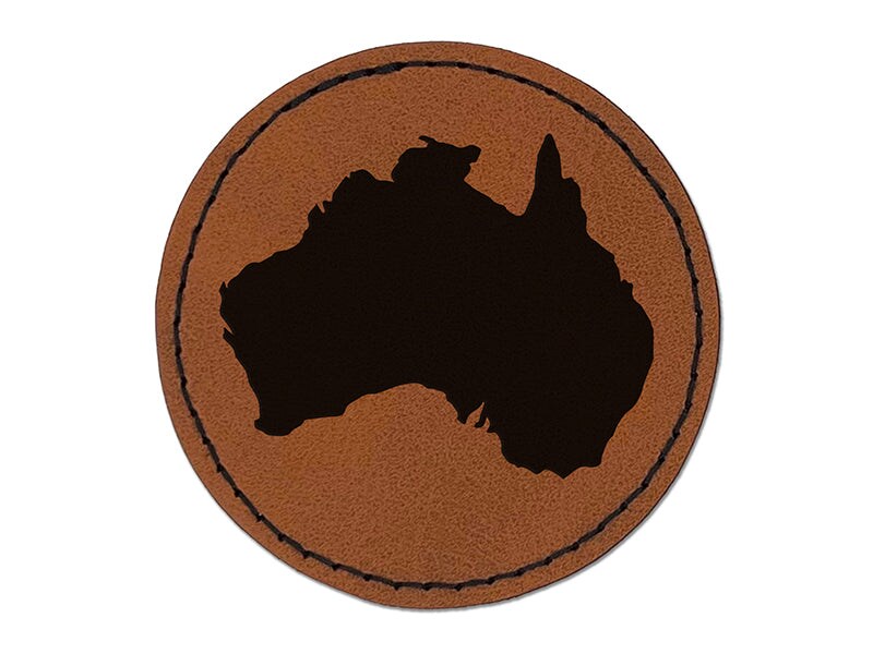 Australia Solid Round Iron-On Engraved Faux Leather Patch Applique - 2.5"