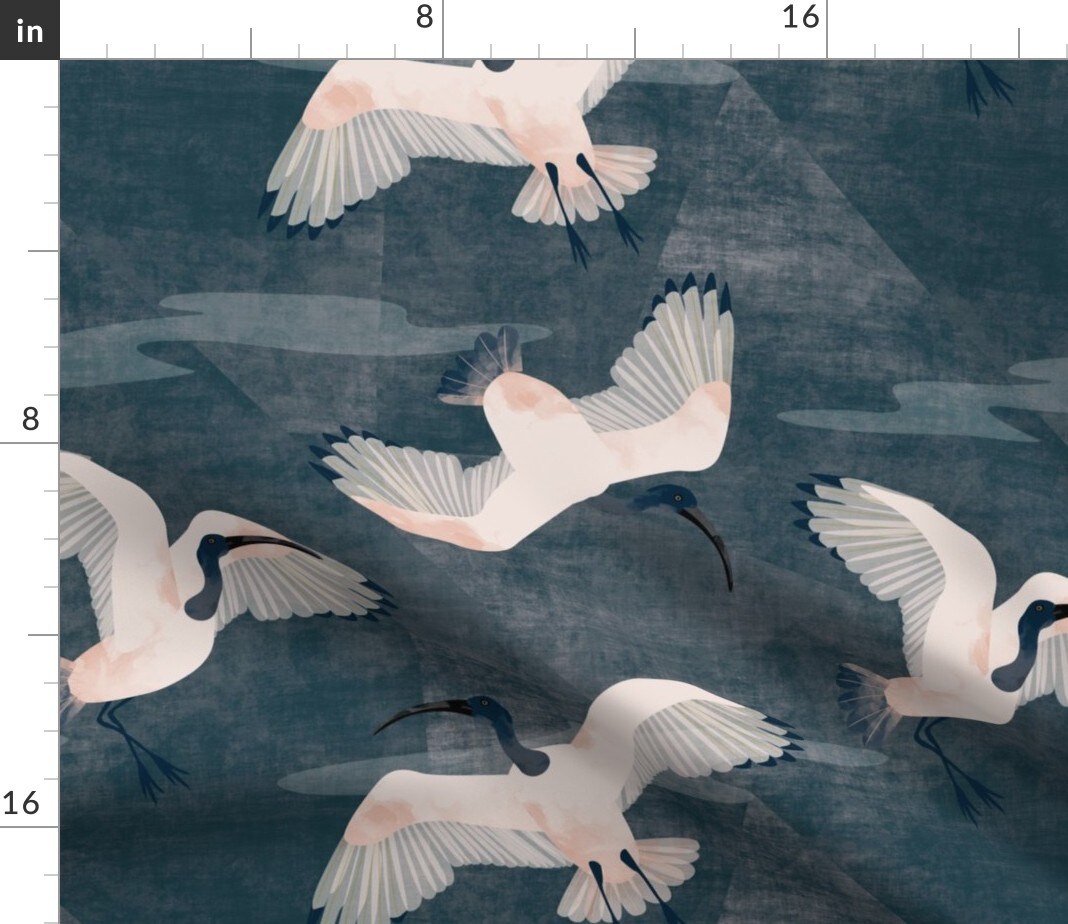 Australian Ibis Weathered Look Denim Blue Distressed Wildlife Custom Printed Fabric by Spoonflower Various Fabrics by the Yard or Fat Quarter