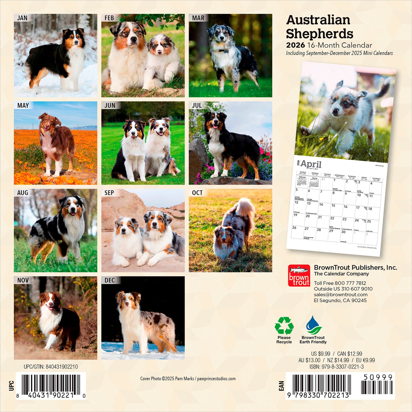 Australian Shepherds | 2026 7 x 14 Inch (Hanging) Monthly Mini Wall Calendar