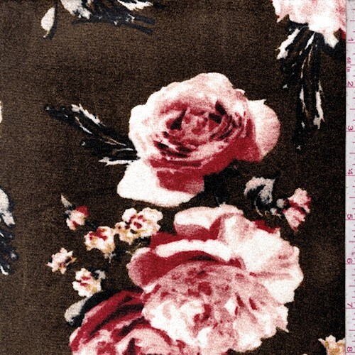 Autumn Brown/Multi Floral Printed Stretch Velvet Knit Fabric By the Yard