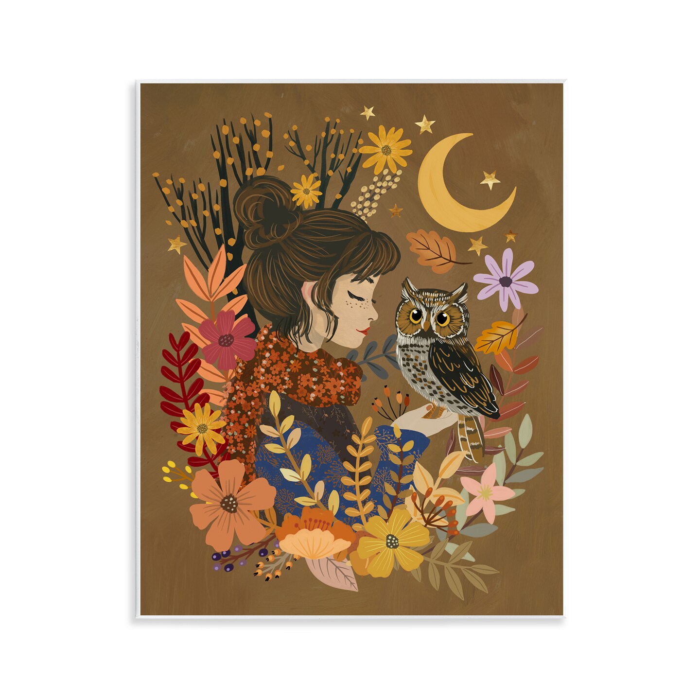 Autumn Owl & Girl Wall Plaque Art