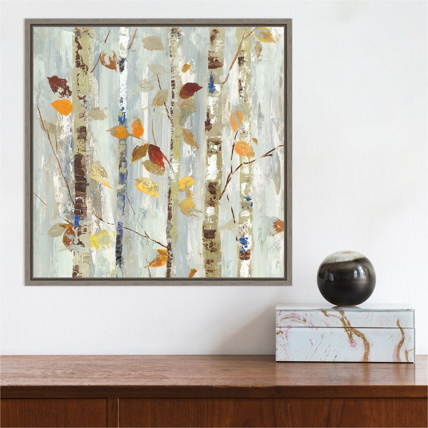 Autumn Petals (Leaves) by Allison Pearce 16-in. W x 16-in. H. Canvas Wall Art Print Framed in Grey
