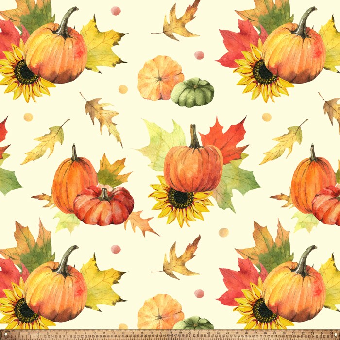 Autumn Pumpkins and Leaves Silky Premium Fleece Fabric | By the Yard