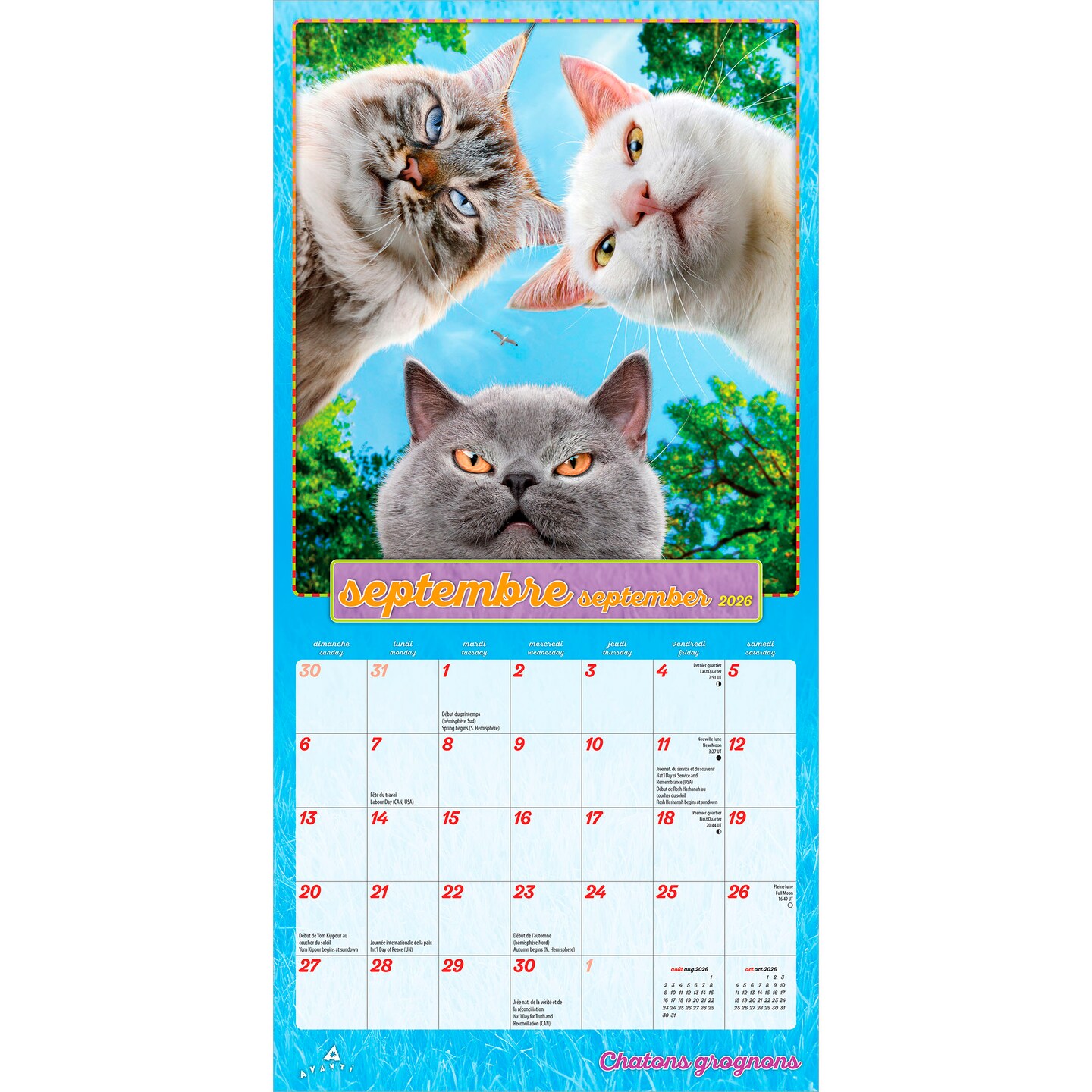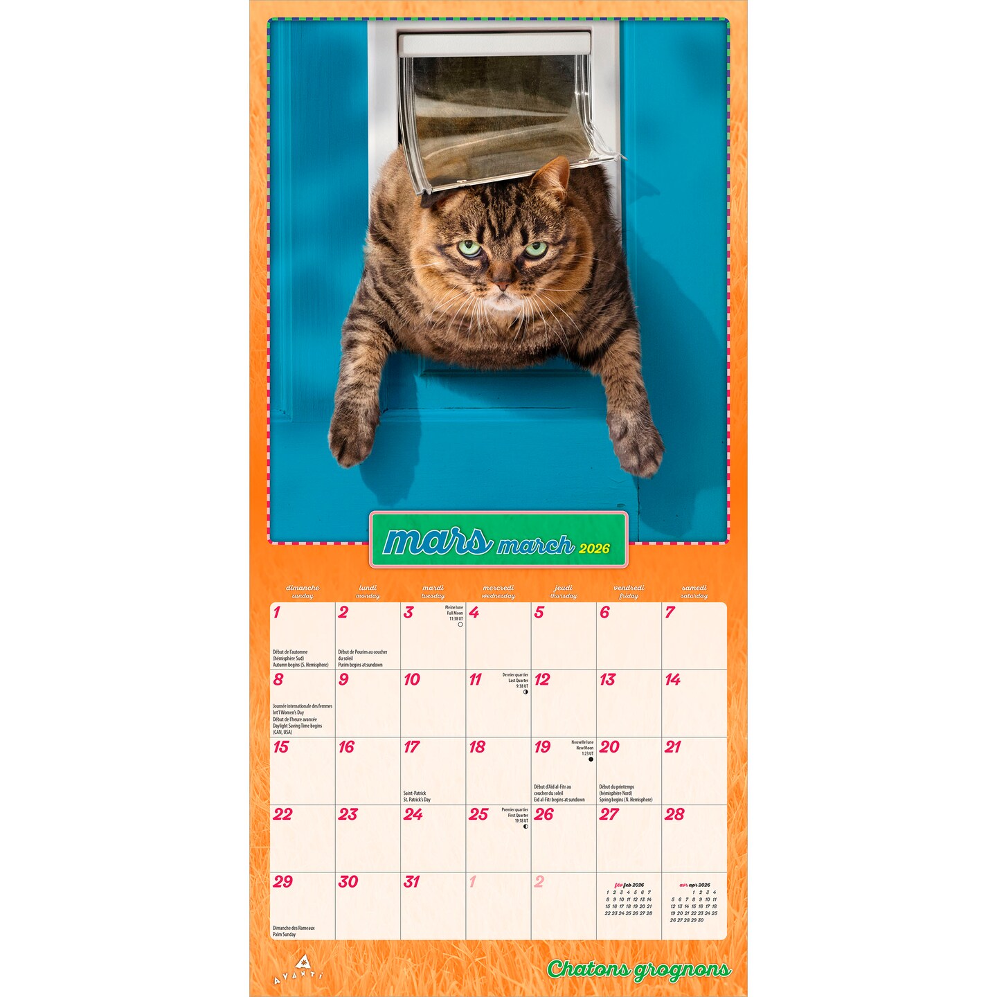 Avanti Chatons Grognons OFFICIEL | 2026 7 x 14 Inch (Hanging) Monthly Mini Wall Calendar | French Language | BrownTrout | Angry Cat Humor