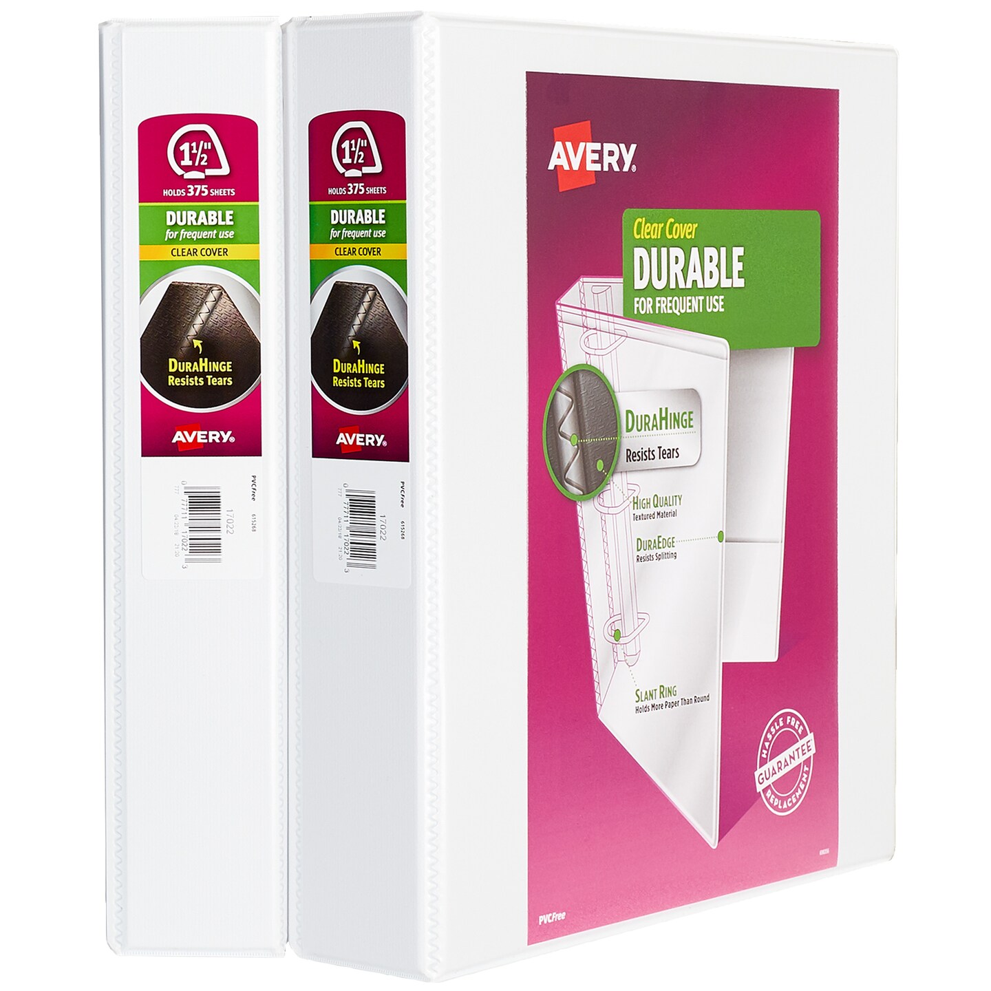 Avery 1.5" Durable View Binder, Slant Rings, 2 White Binders (17022)