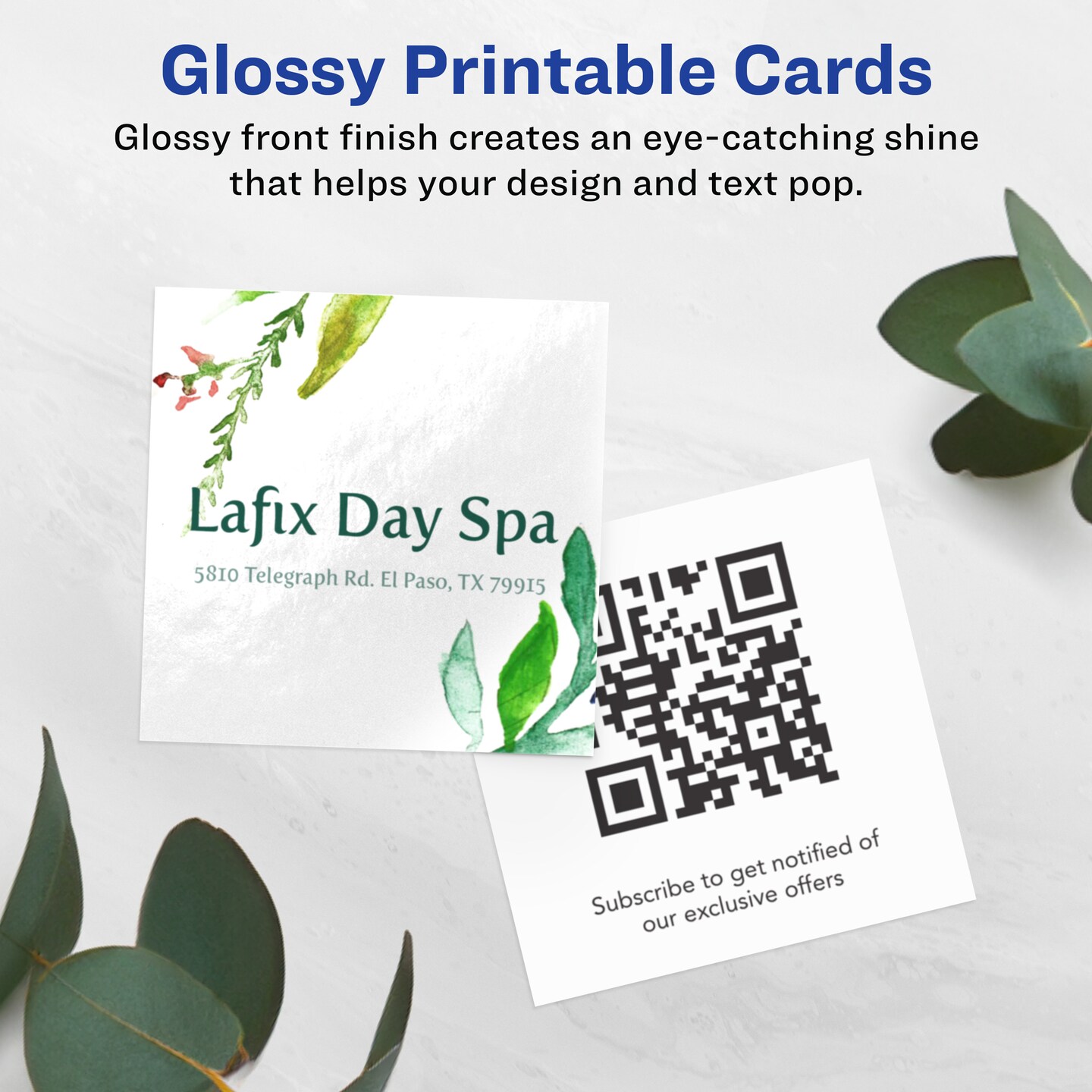 Avery 2" x 2" Square, Glossy White Square Cards