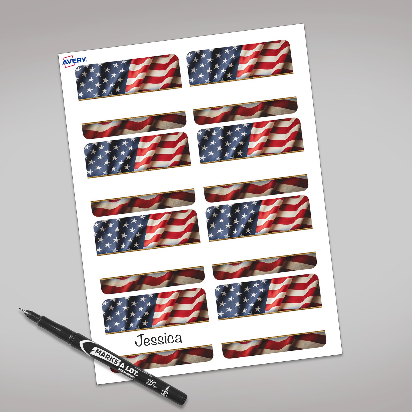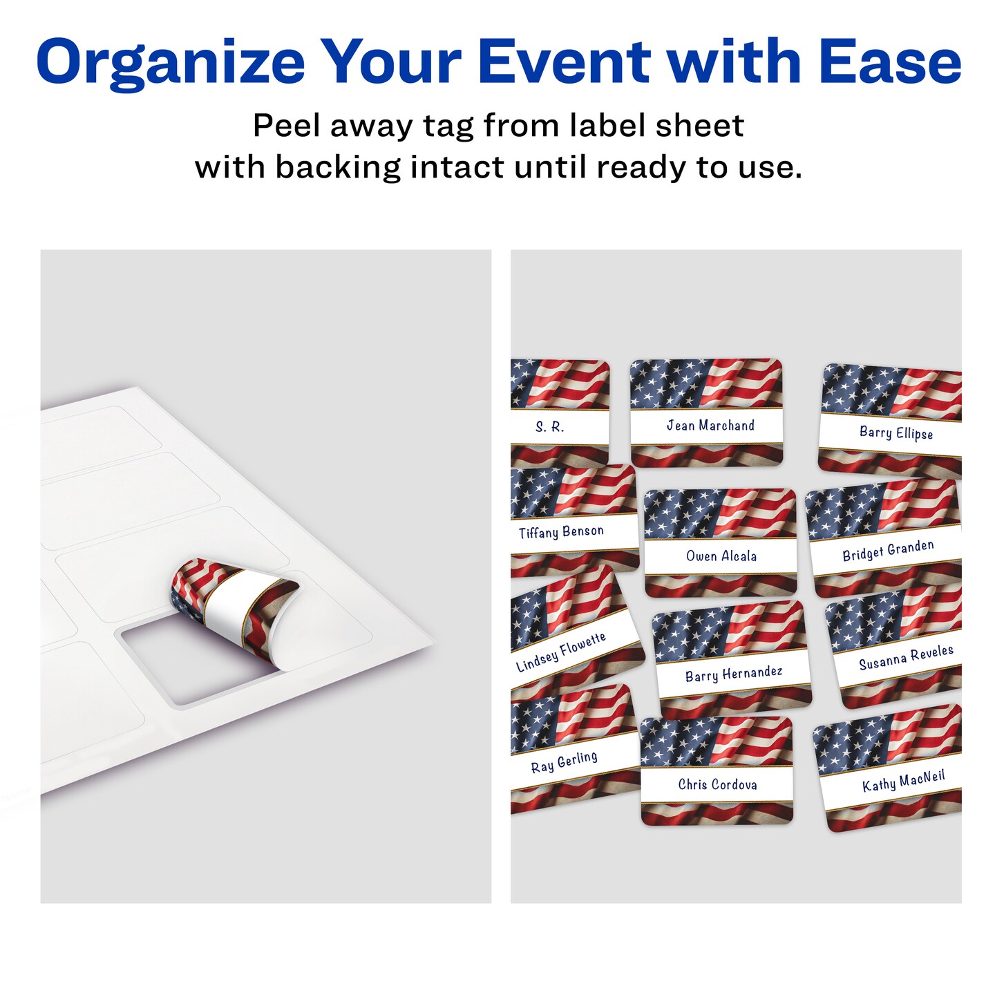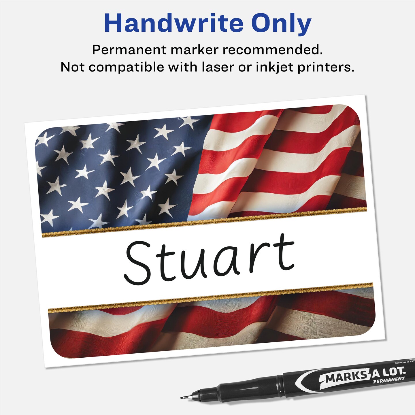 Avery American Flag with Gold Frame Adhesive Name Badges, 2-1/3" x 3-3/8", Handwrite-Only, Great for Patriotic Parties, Election Events, 4th of July Parties, and Party Favors, 80 Name Badges Total
