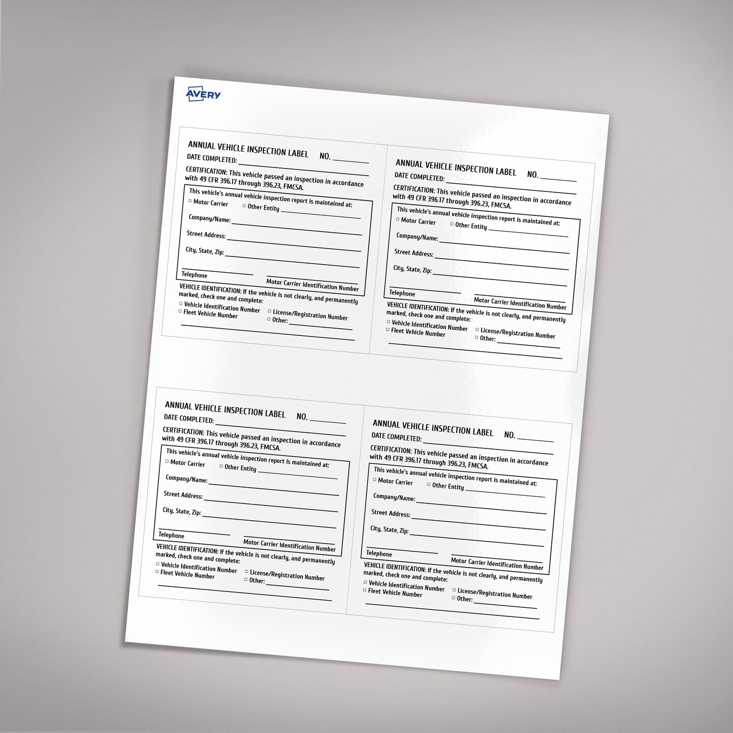 Avery Annual Vehicle Inspection Label Stickers, Waterproof, UV Resistant, Preprinted, Handwrite Only, 4" x 4", 20 Stickers