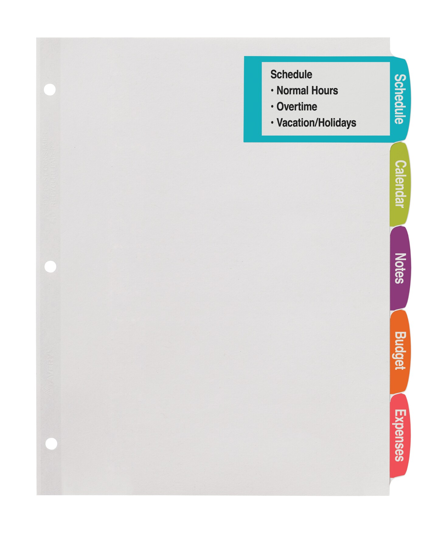 Avery Big Tab Printable Large White Label Dividers with Easy Peel, 5 Tabs, 4 Sets (14438)