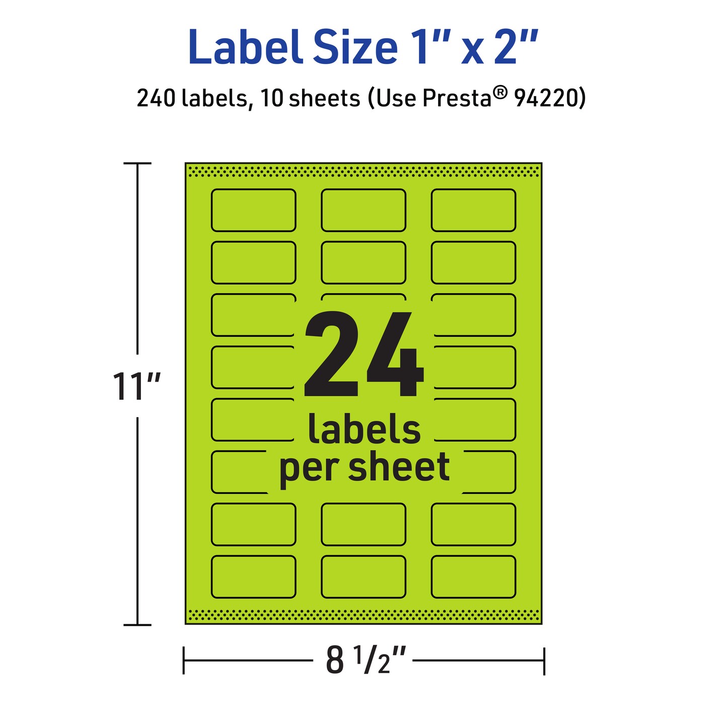 Avery Bright Green Paper Labels, 1" x 2" Rectangle