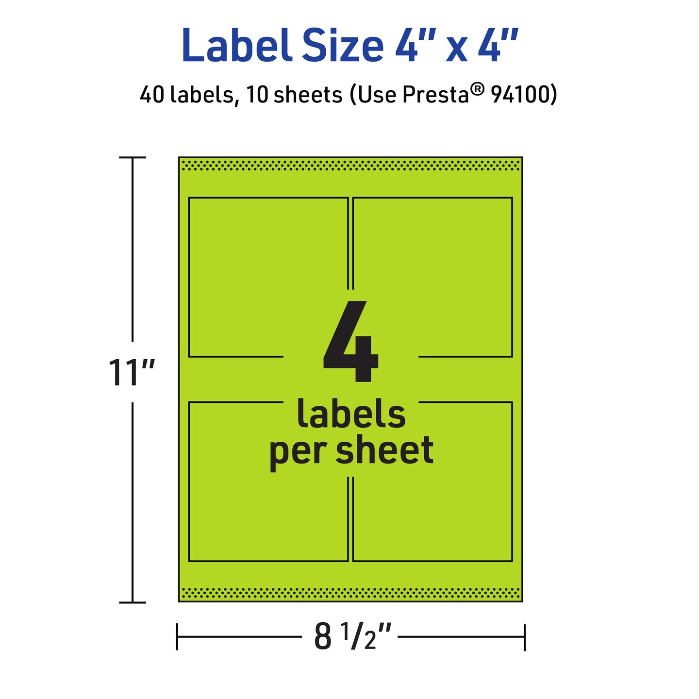 Avery Bright Green Paper Labels, 4" x 4" Square