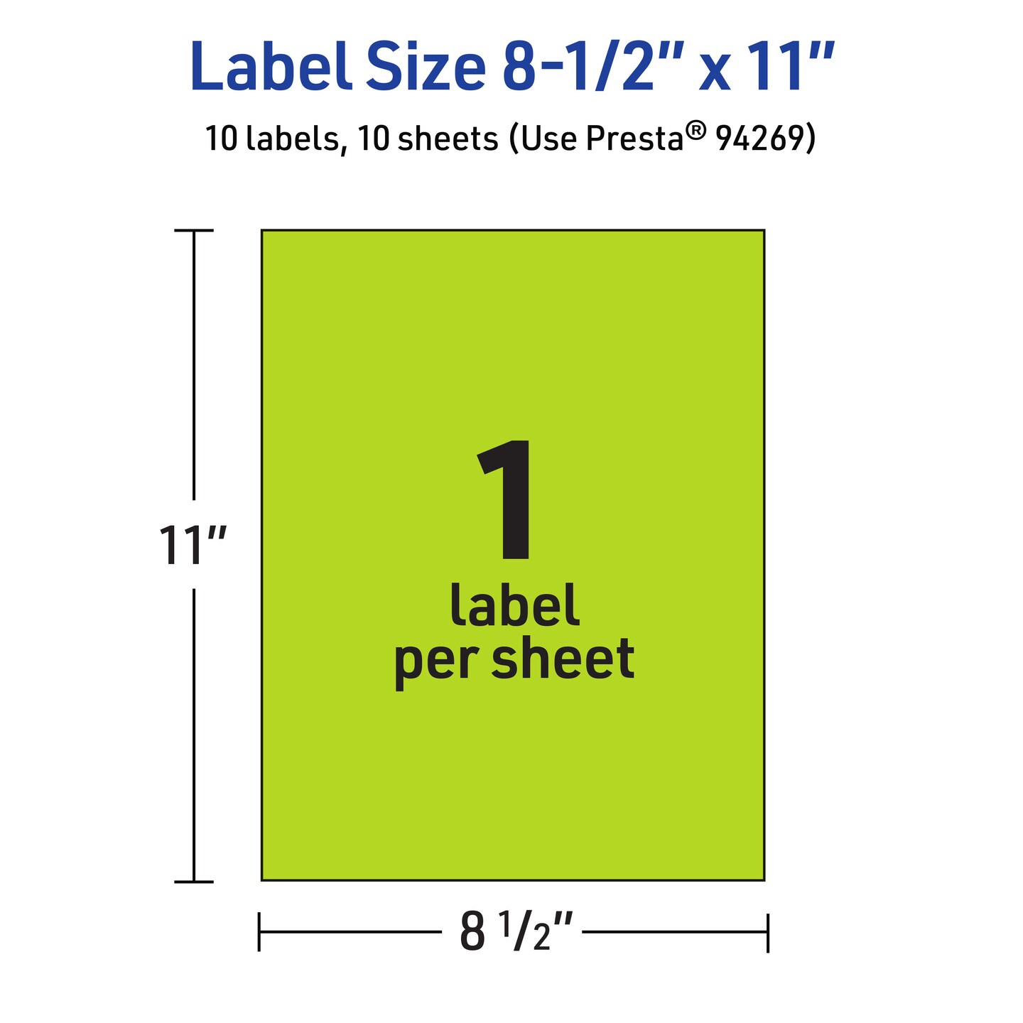 Avery Bright Green Sticker Paper, 8.5" x 11" Rectangle