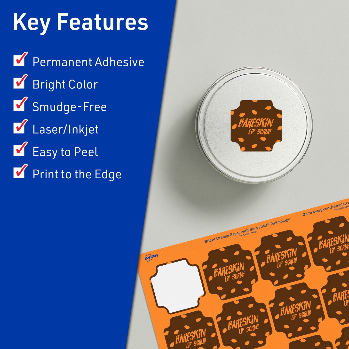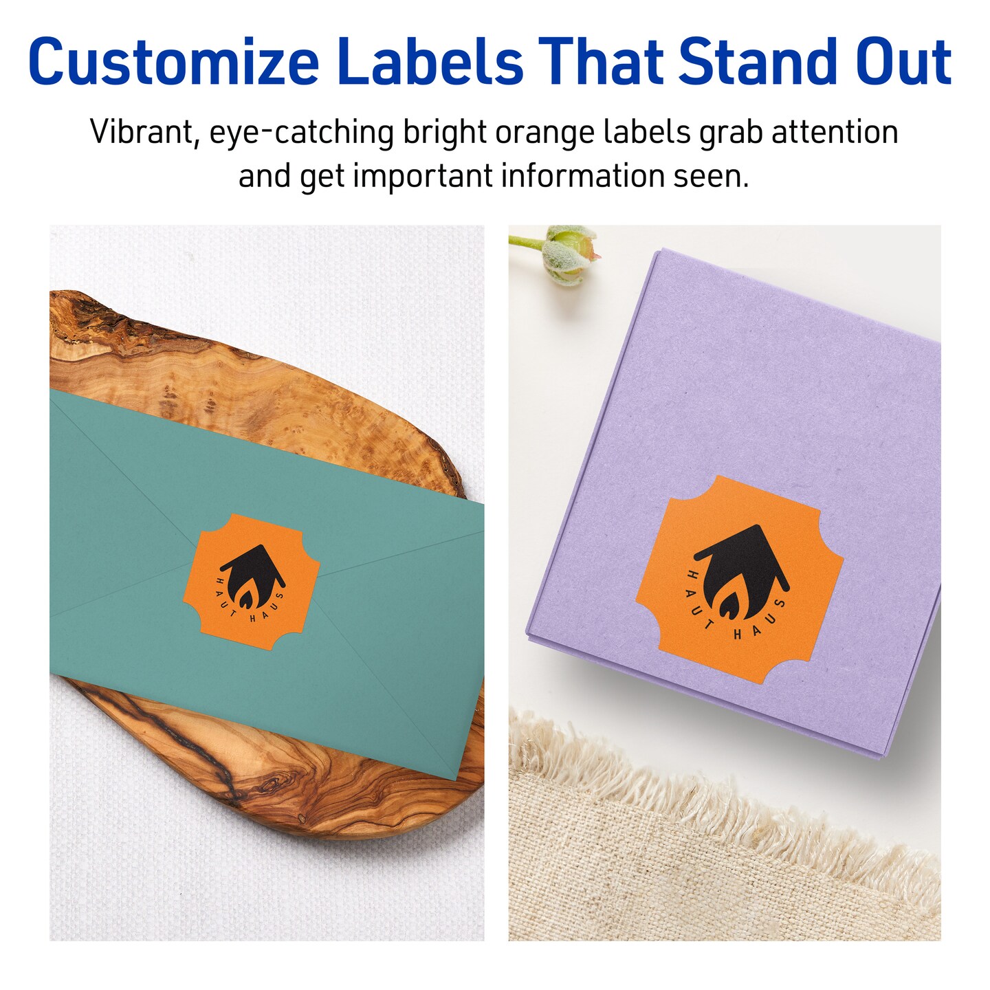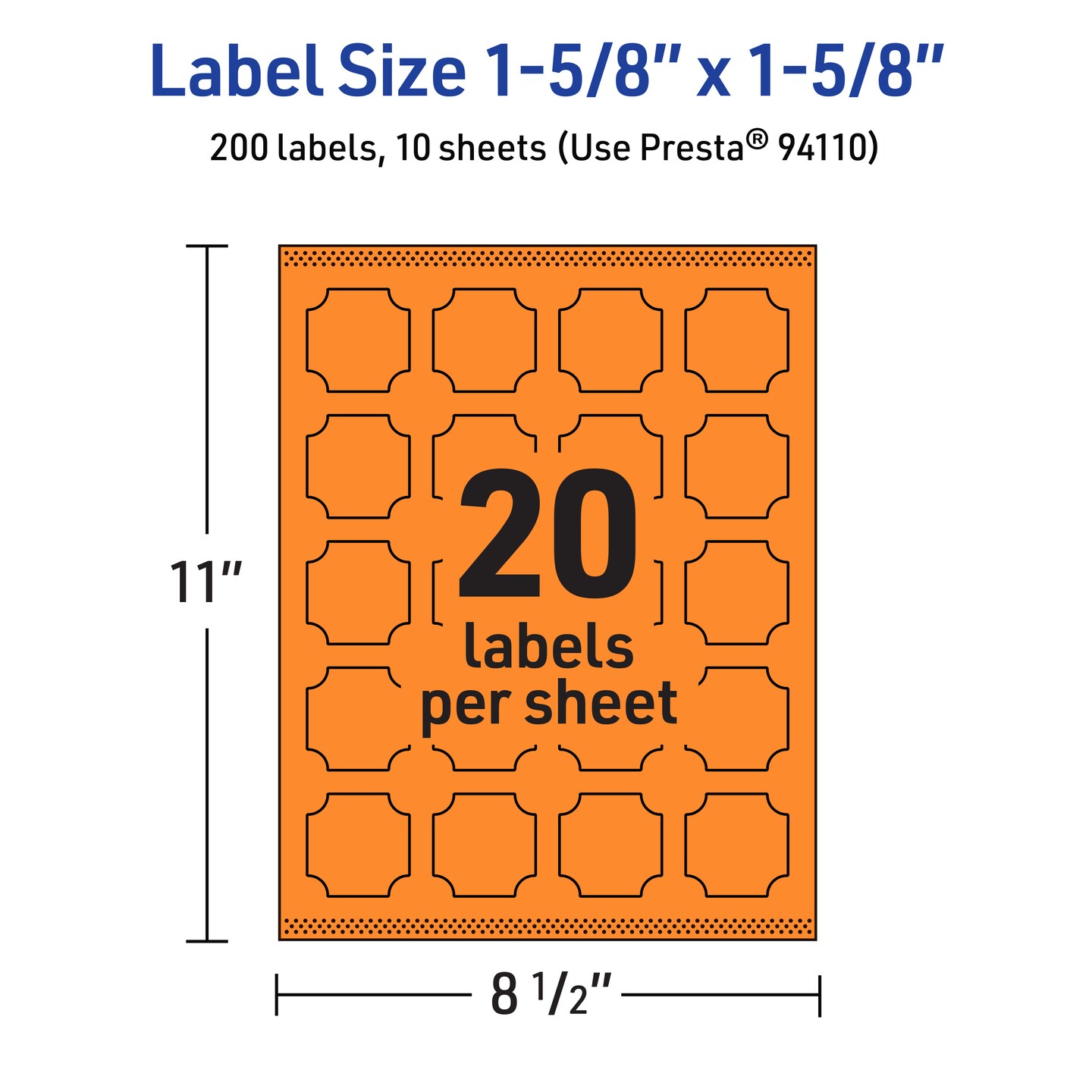 Avery Bright Orange Paper Labels, 1-5/8" x 1-5/8" Square Scalloped
