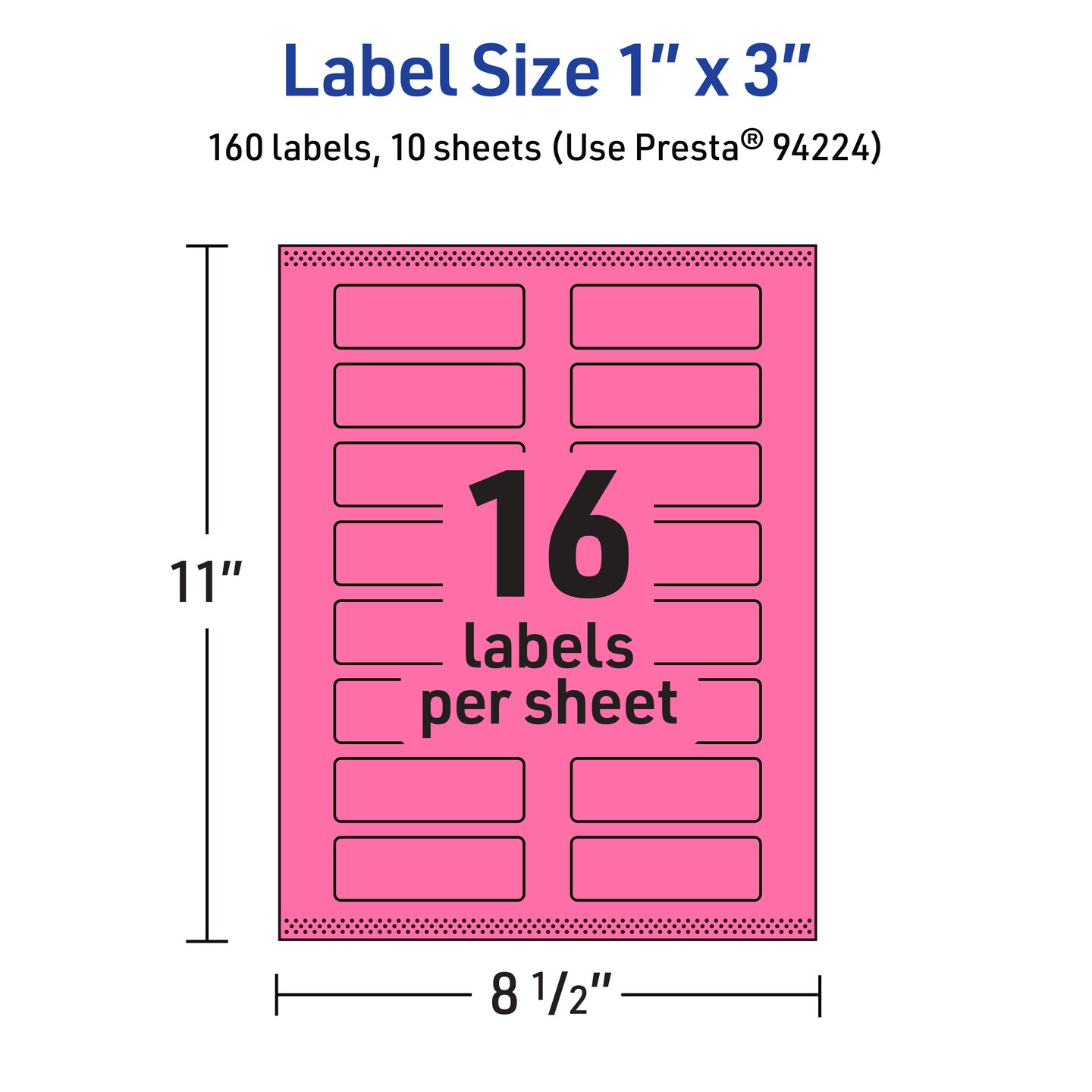 Avery Bright Pink Paper Labels, 1" x 3" Rectangle