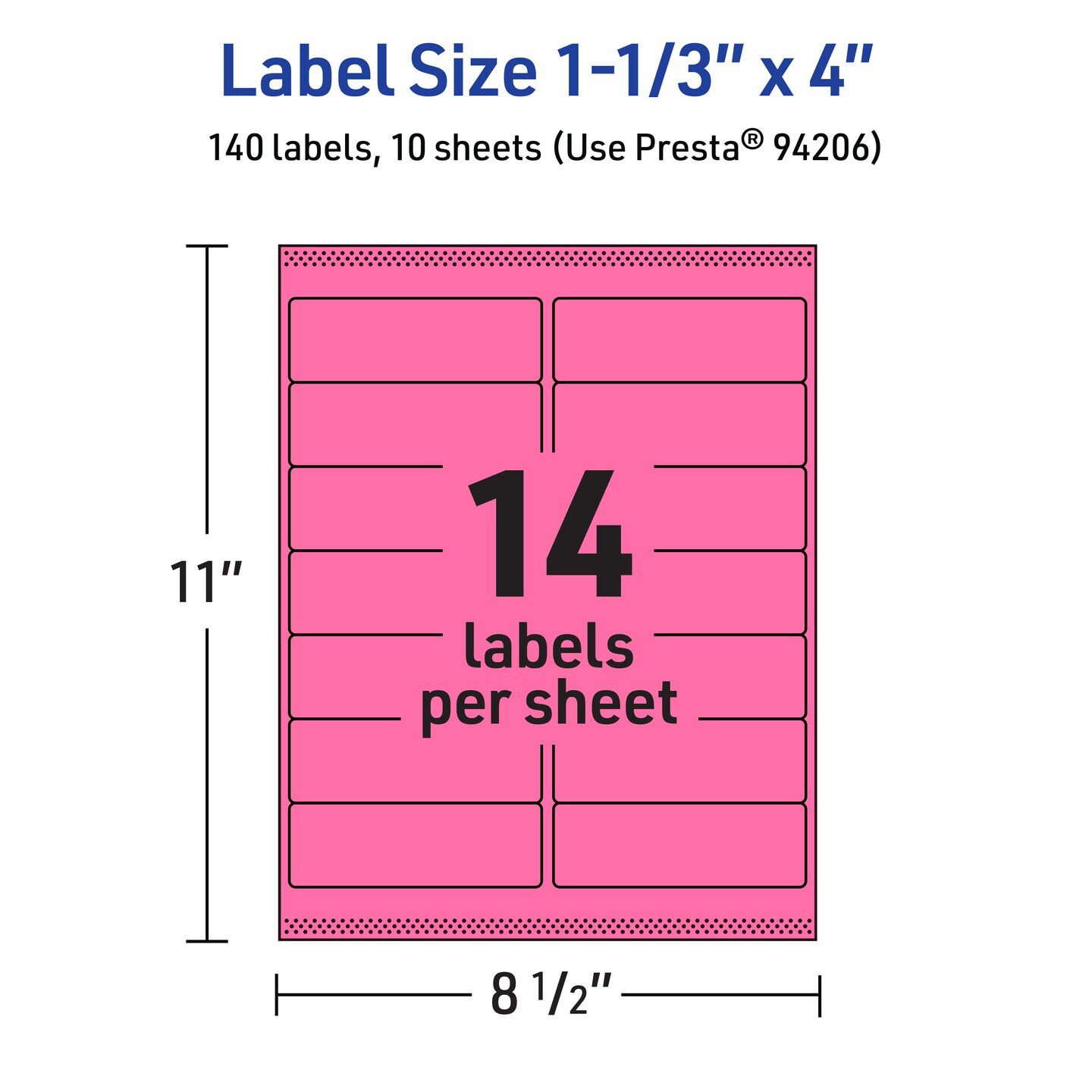 Avery Bright Pink Paper Labels, 1-1/3" x 4" Rectangle