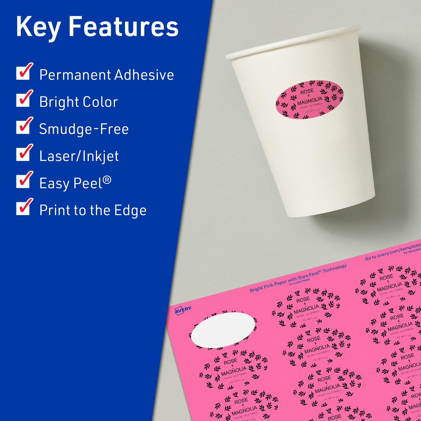 Avery Bright Pink Paper Labels, 1-1/8" x 2-1/4" Oval