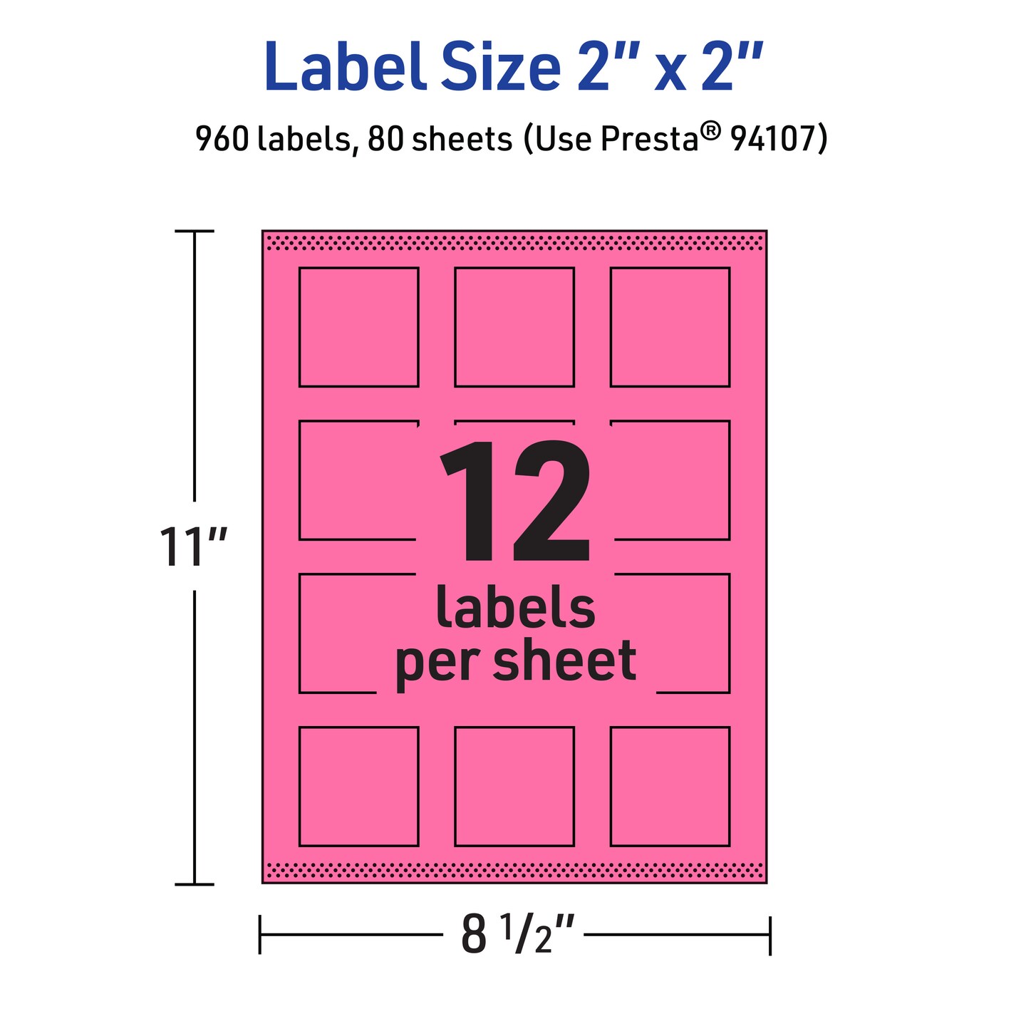 Avery Bright Pink Paper Labels, 2" x 2" Square