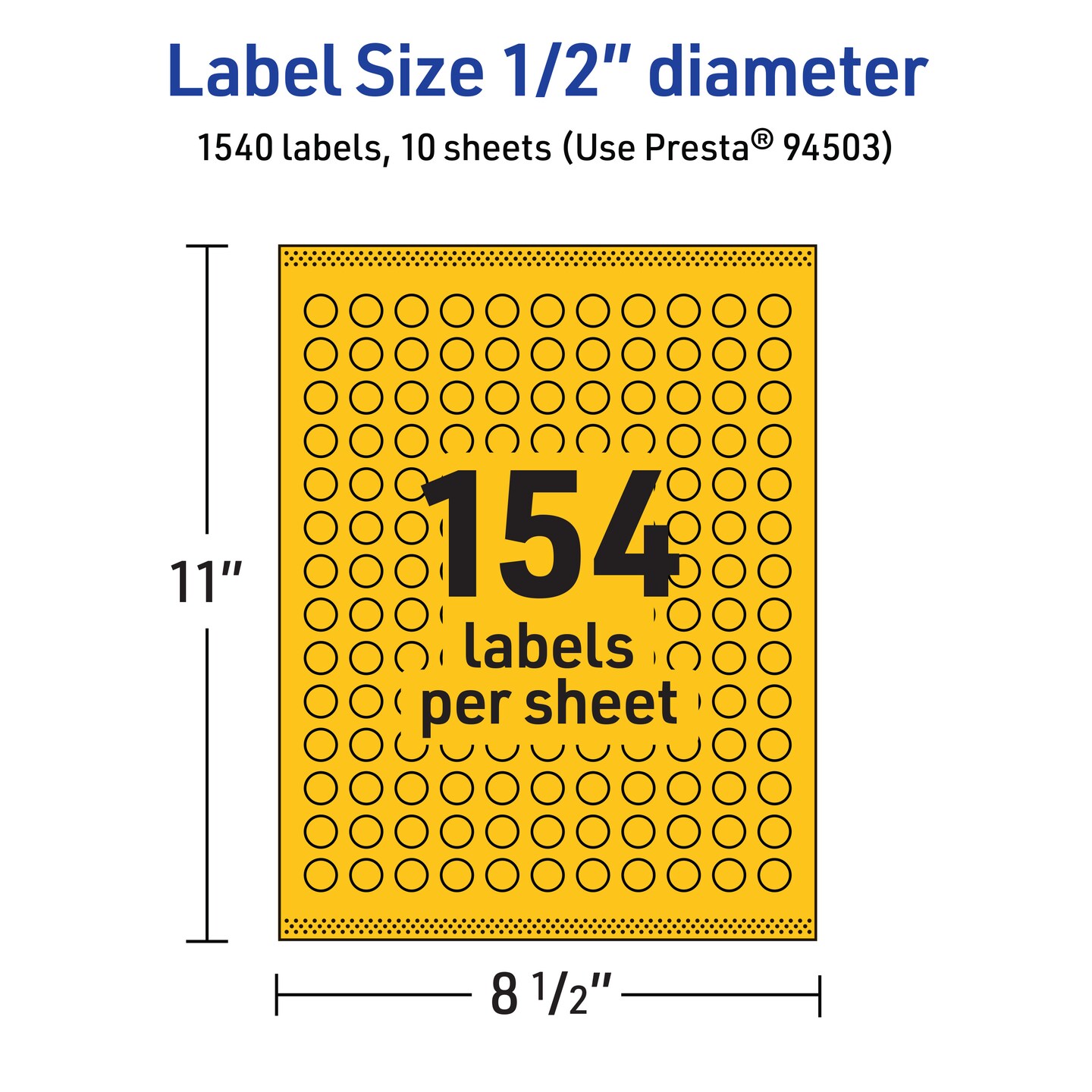 Avery Bright Yellow Paper Labels, 0.5" Diameter Round