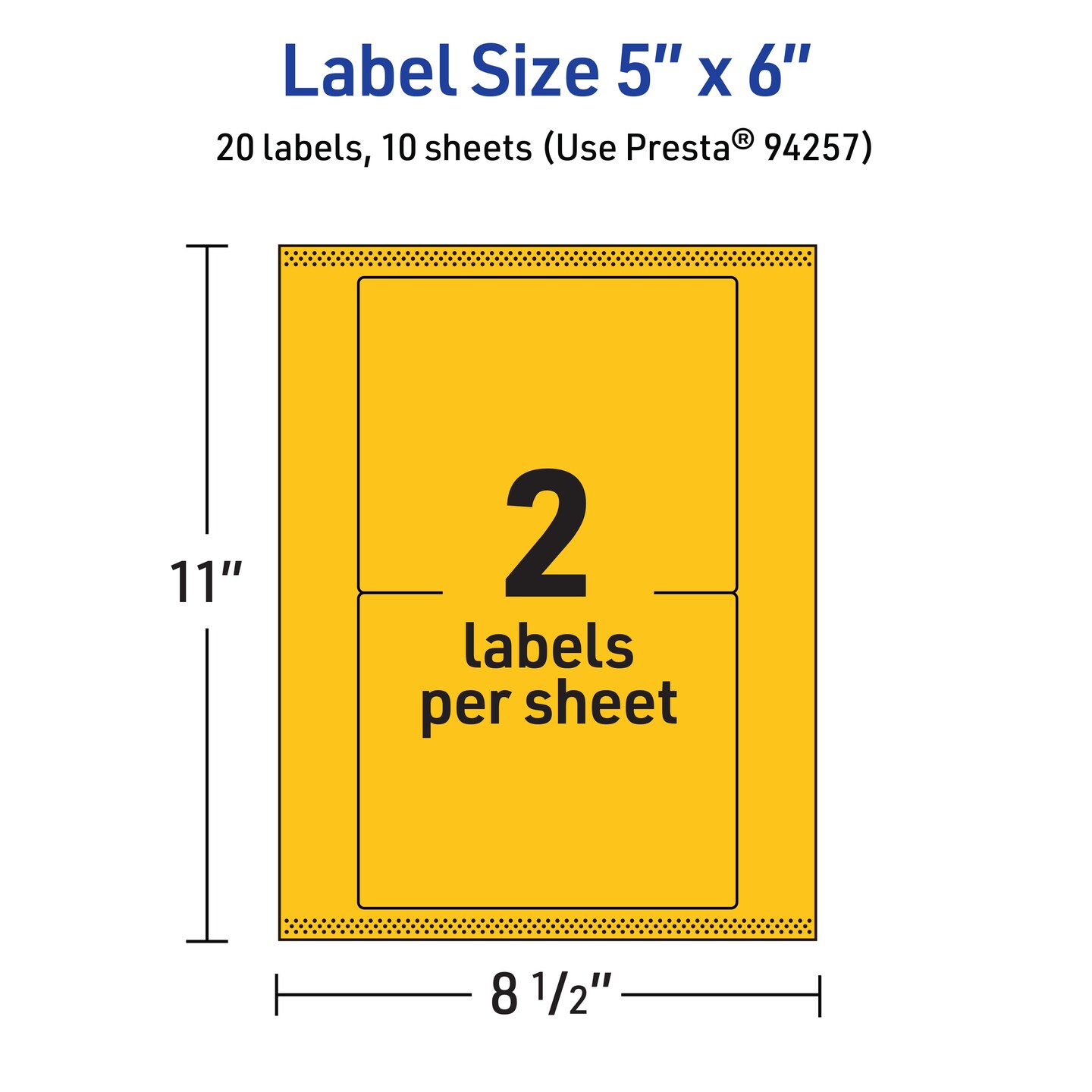 Avery Bright Yellow Paper Labels, 5" x 6" Rectangle