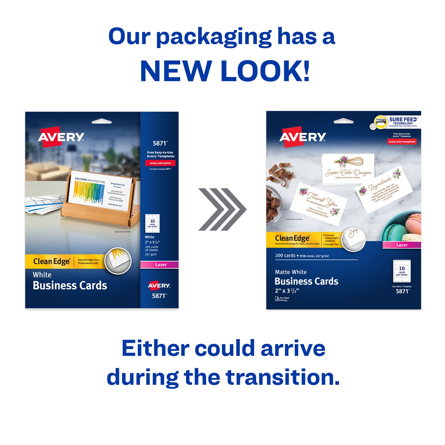 Avery Clean Edge Printable Business Cards with Sure Feed Technology, 2" x 3.5", White, 200 Blank Cards for Laser Printers (5871)