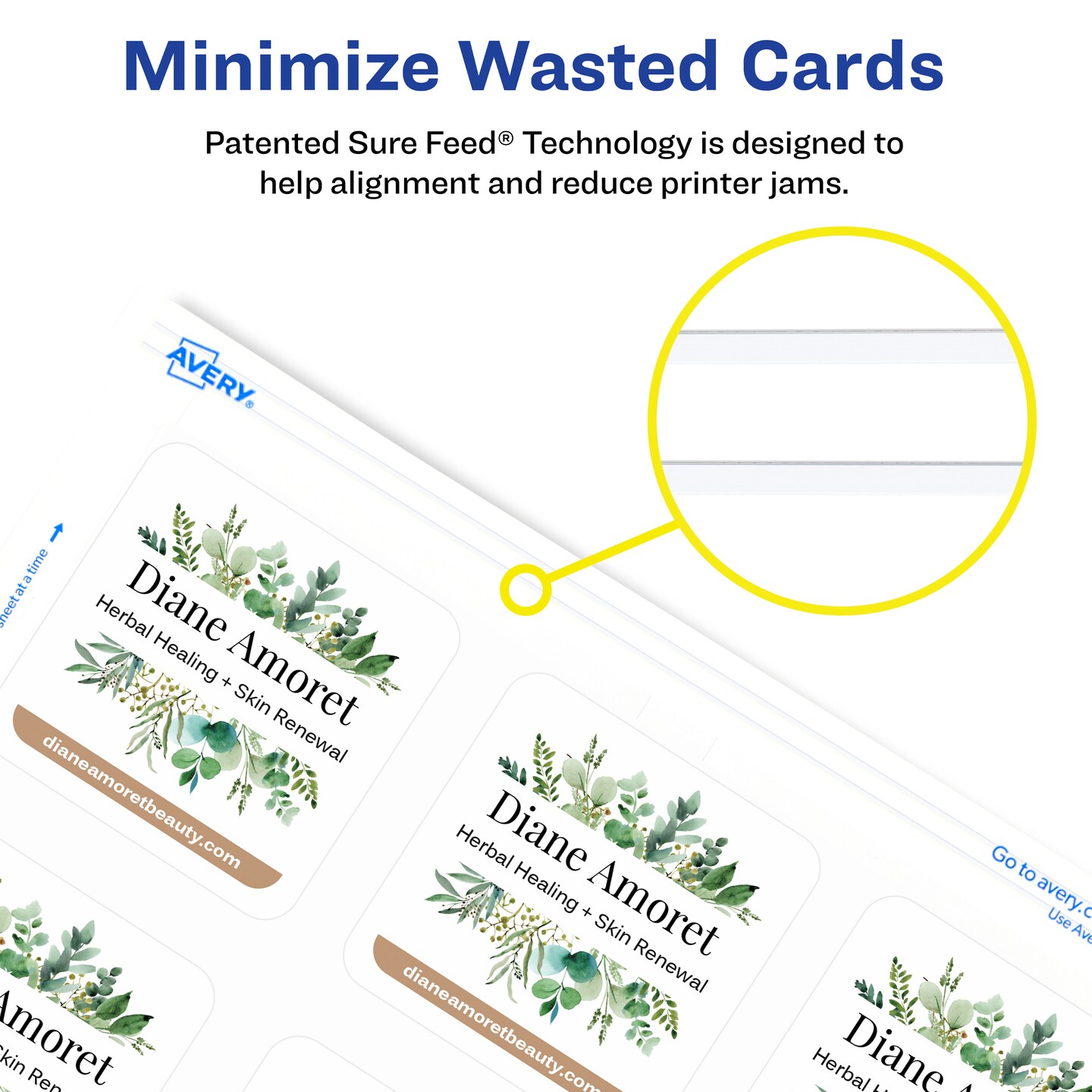 Avery Clean Edge Printable Square Cards with Sure Feed Technology, Rounded Corners, 2.5" x 2.5", Matte White, Inkjet Printer Compatible, 180 Blank Cards Total (35702)