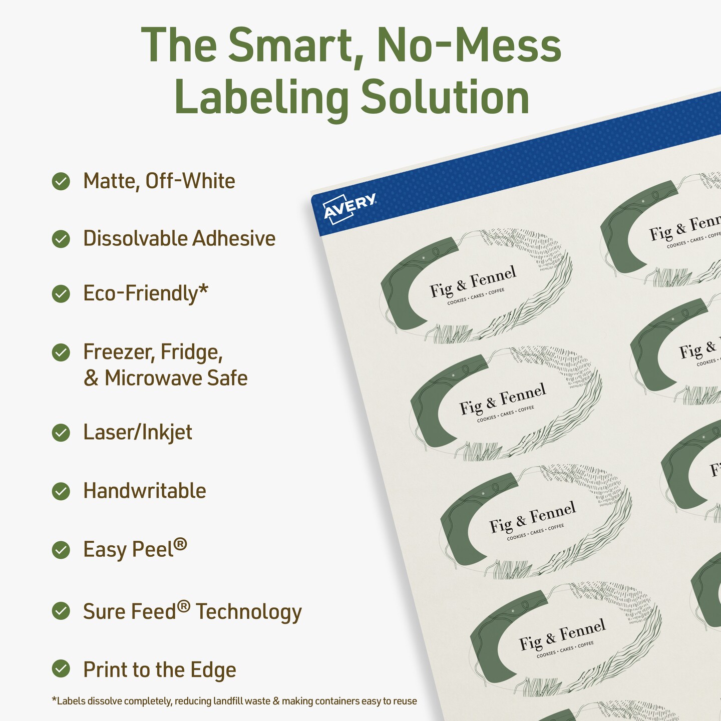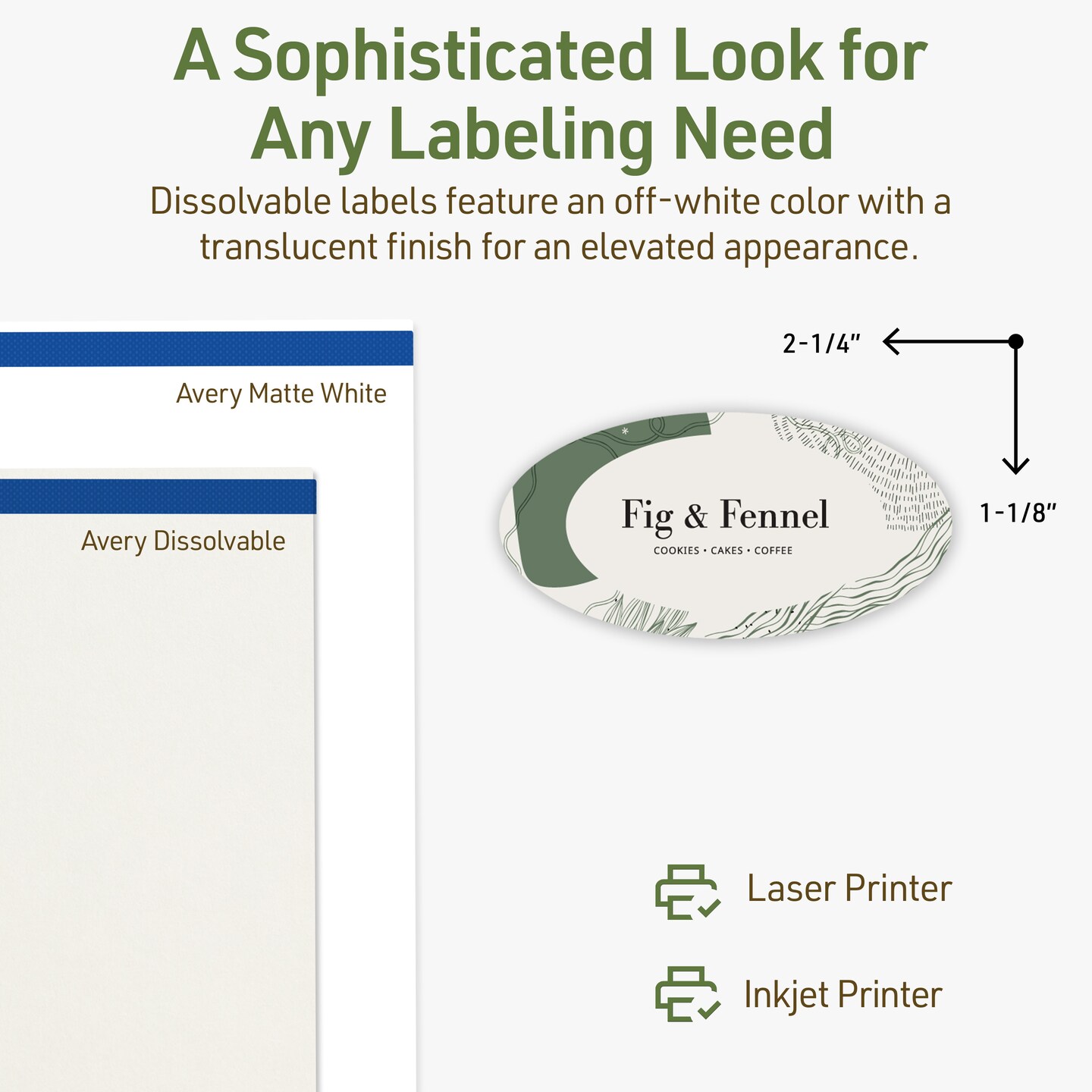 Avery Dissolvable Labels, 1-1/8" x 2-1/4" Oval