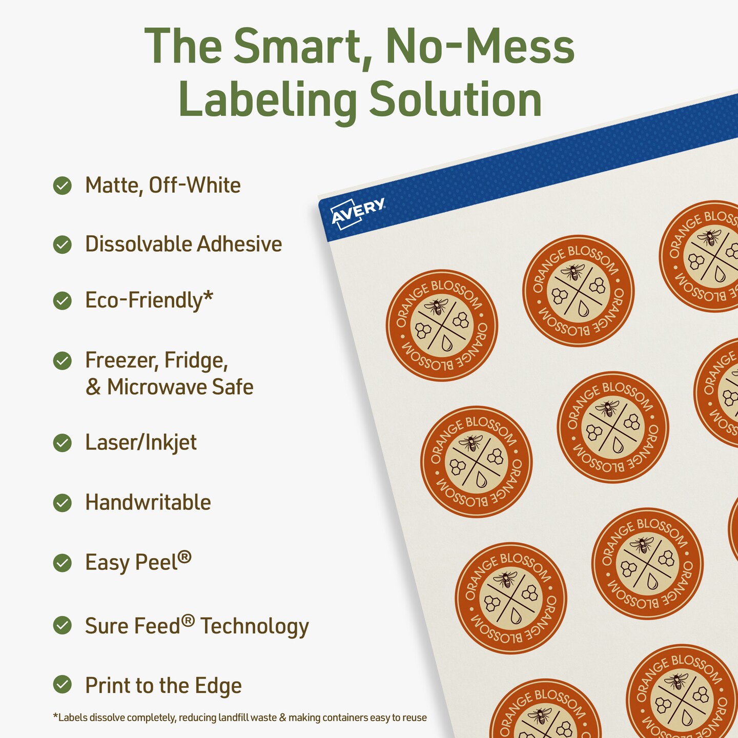 Avery Dissolvable Labels, 1.25" Diameter Round